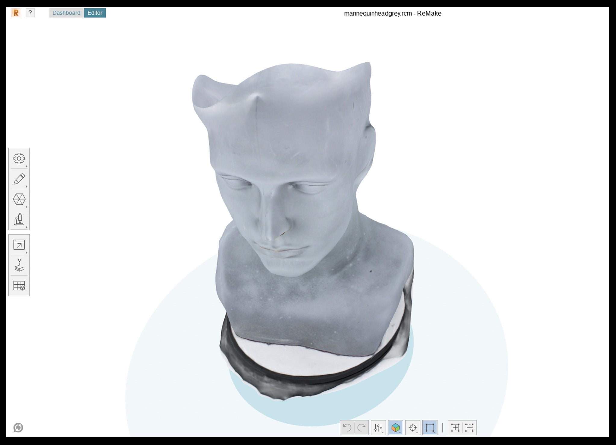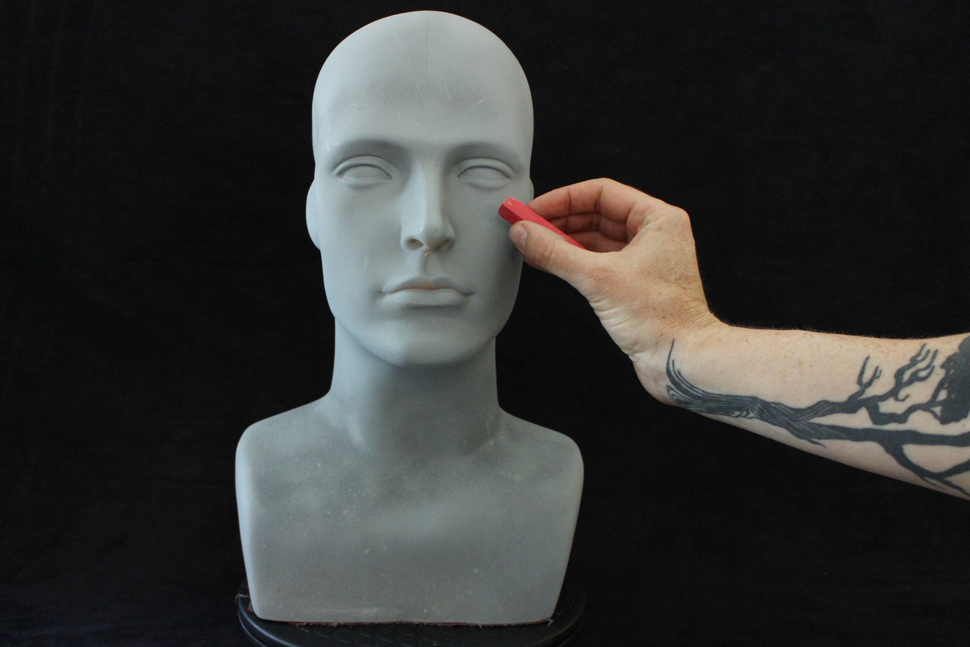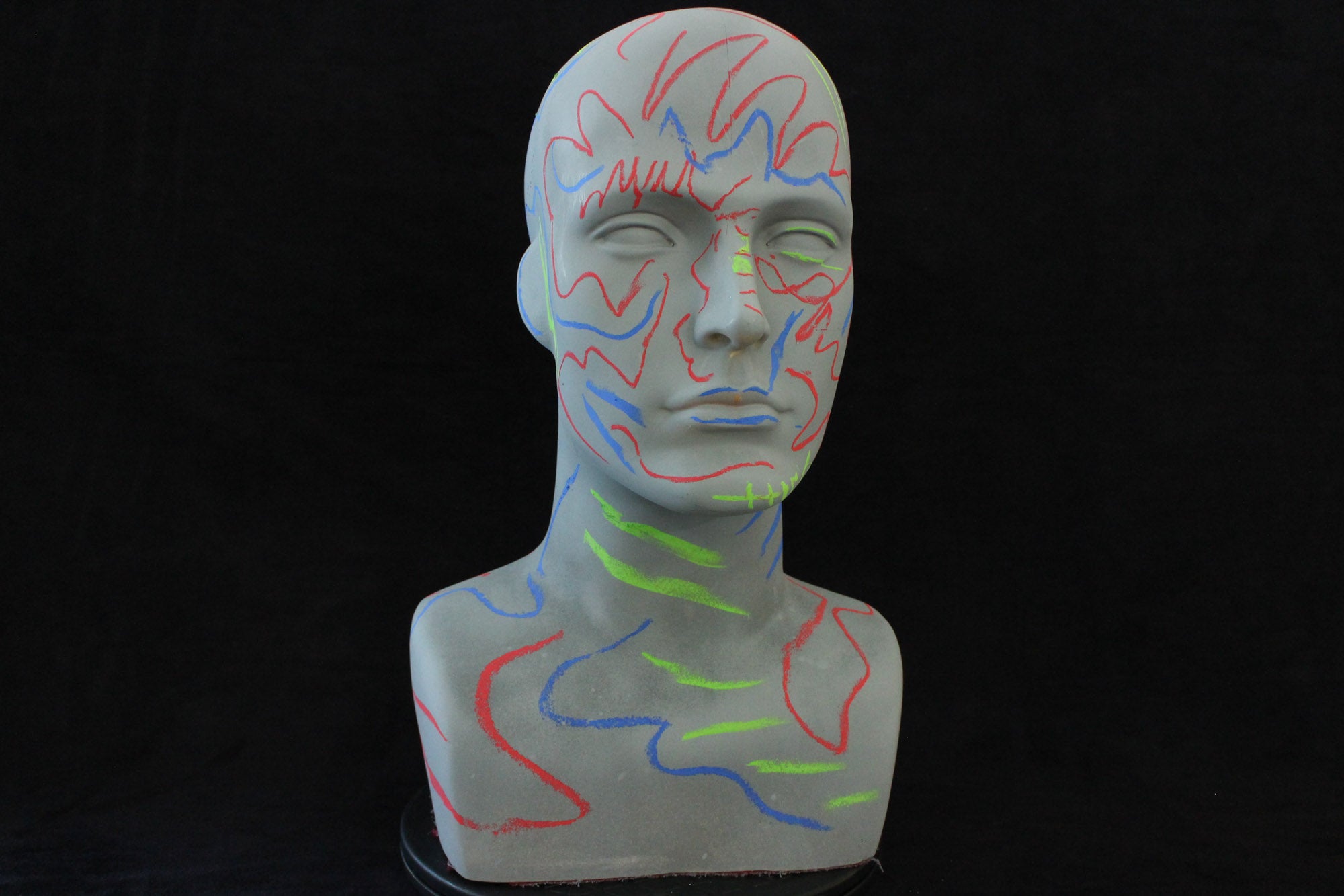 If your object doesn't have a lot of surface detail: objects that are all one uniform color sometimes don't have enough points of reference for photogrammetry to use in reconstruction. So, if you are scanning an object like this mannequin head and you don't care about capturing the color layer, you can add your own details by drawing on the surface, or sticking stickers or pieces of tape on the object.