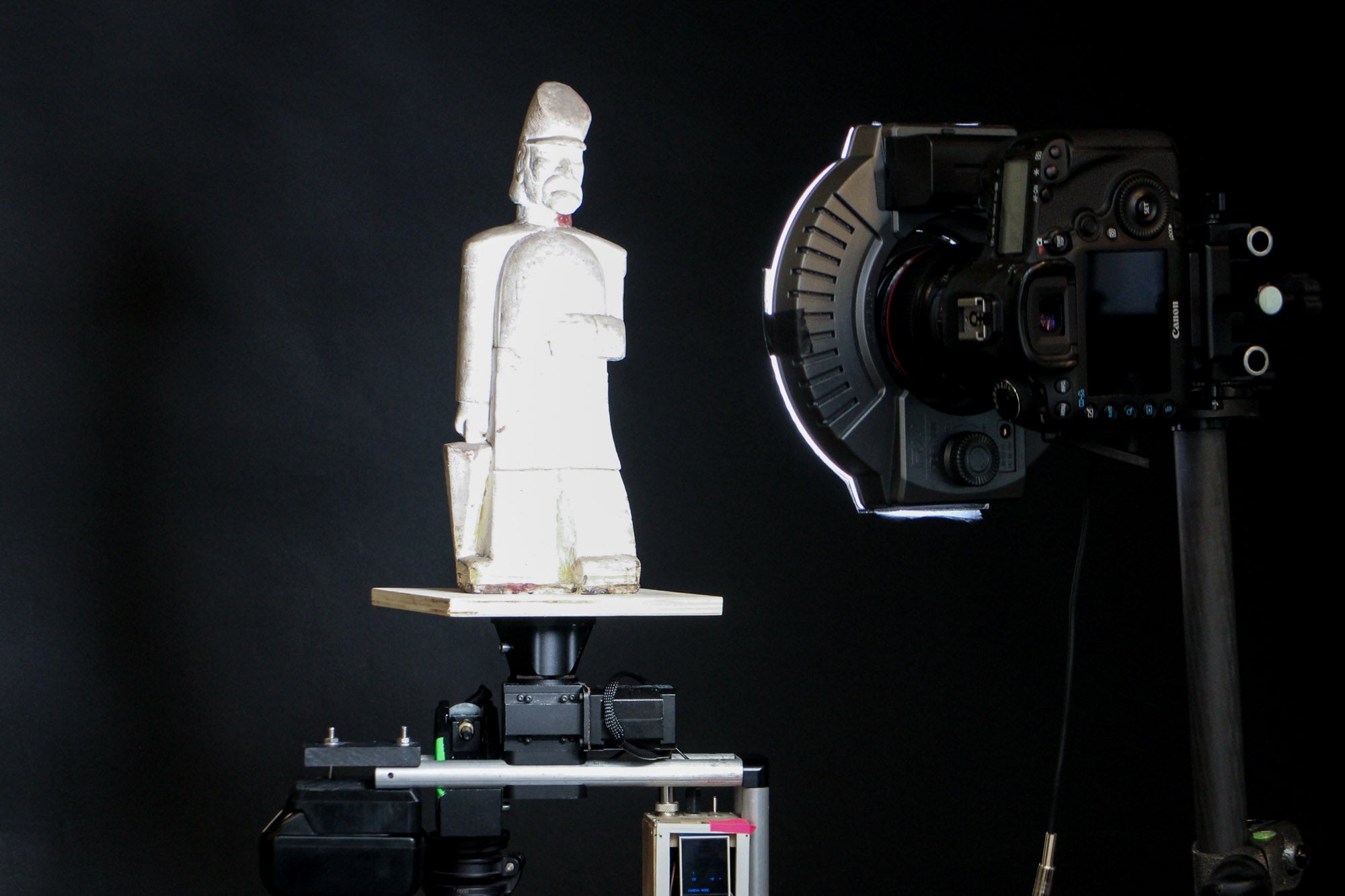 Photogrammetry requires a very specific kind of photography, the aim of which is much more practical than aesthetic. Ideally every area of the object will be visible in at least two photos in order to give the reconstruction software enough points of reference to work with. There are a few different strategies you can use for your photo set-up depending on what kind of object you are shooting and your budget.