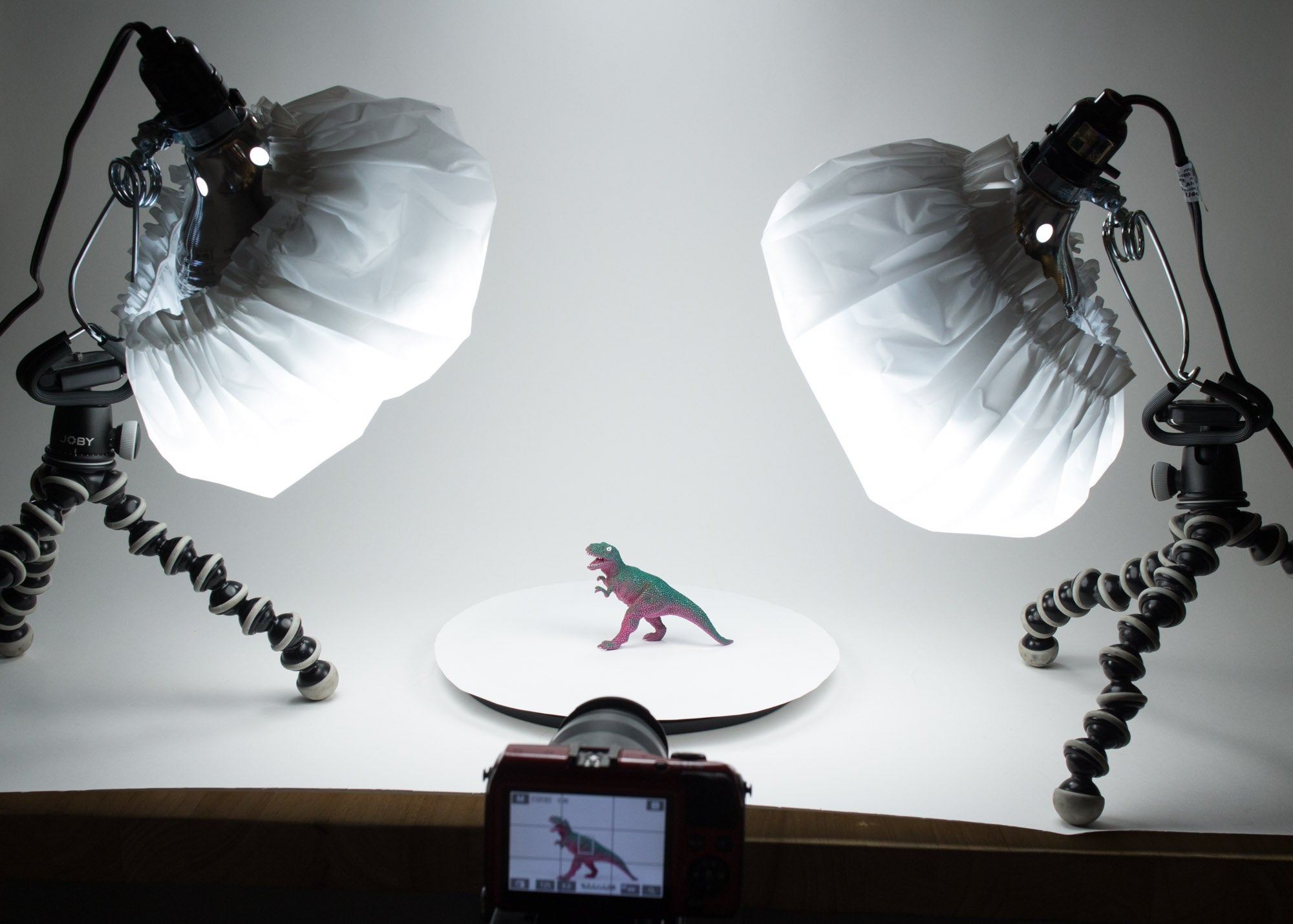 If you are shooting by moving around an object, a lot of the same lighting rules apply. You always want diffuse even light, but this time you need the light to be even all the way around your object, which can be trickier to achieve.