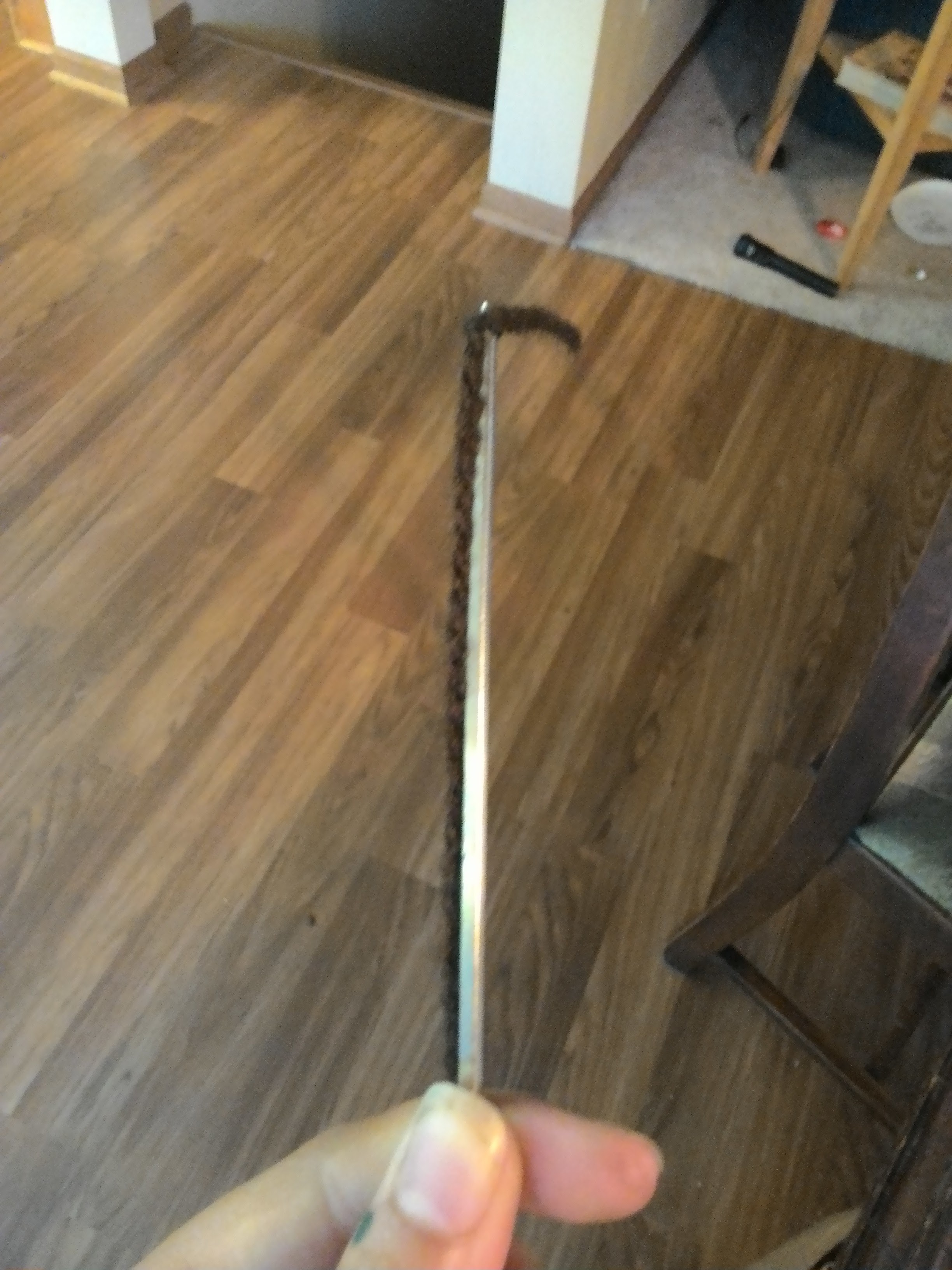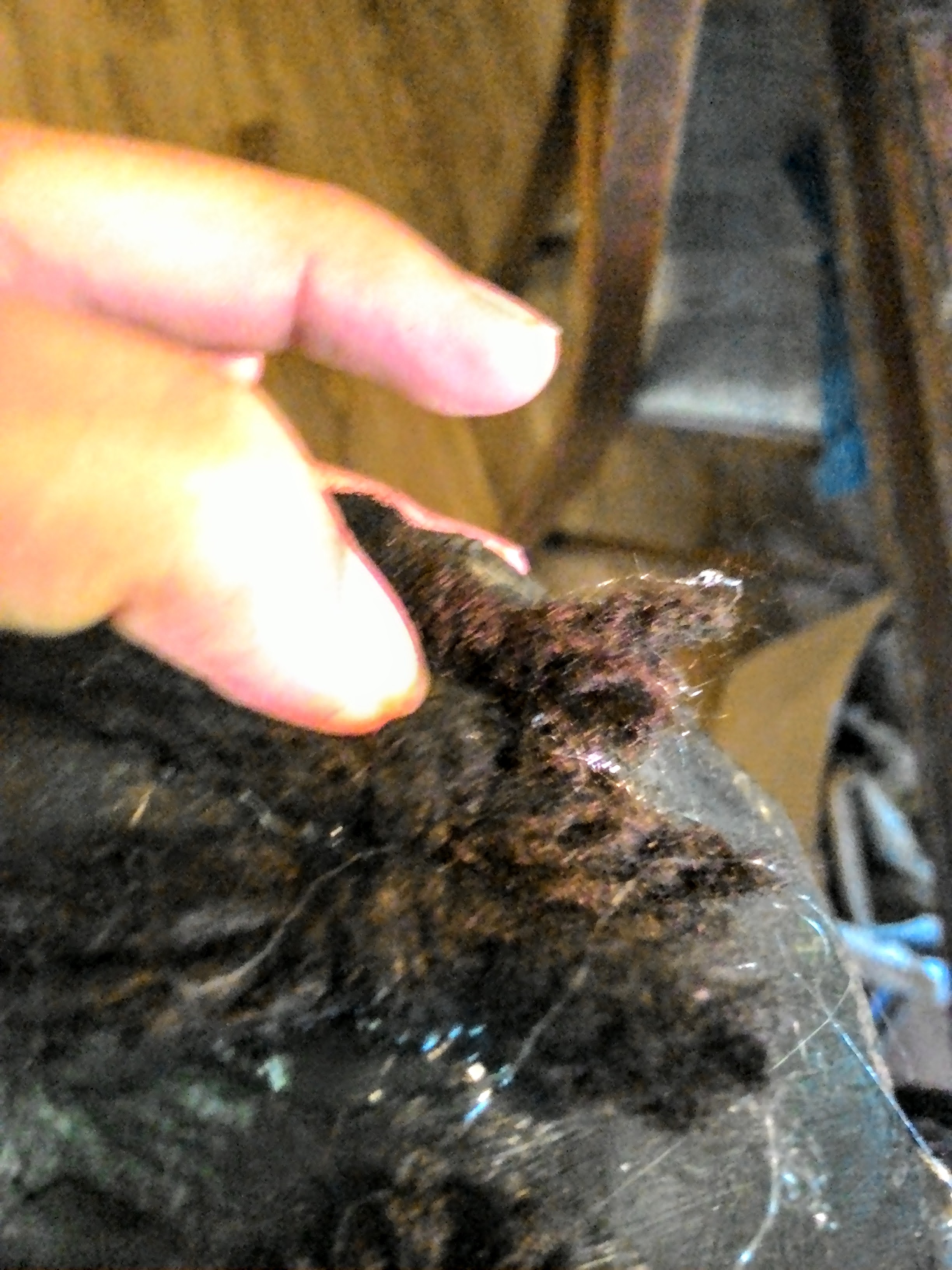 I made a mixture of glue, black acrylic paint, and water, and applied it to the yarn, making sure to rough up the frays, and stick everything together.