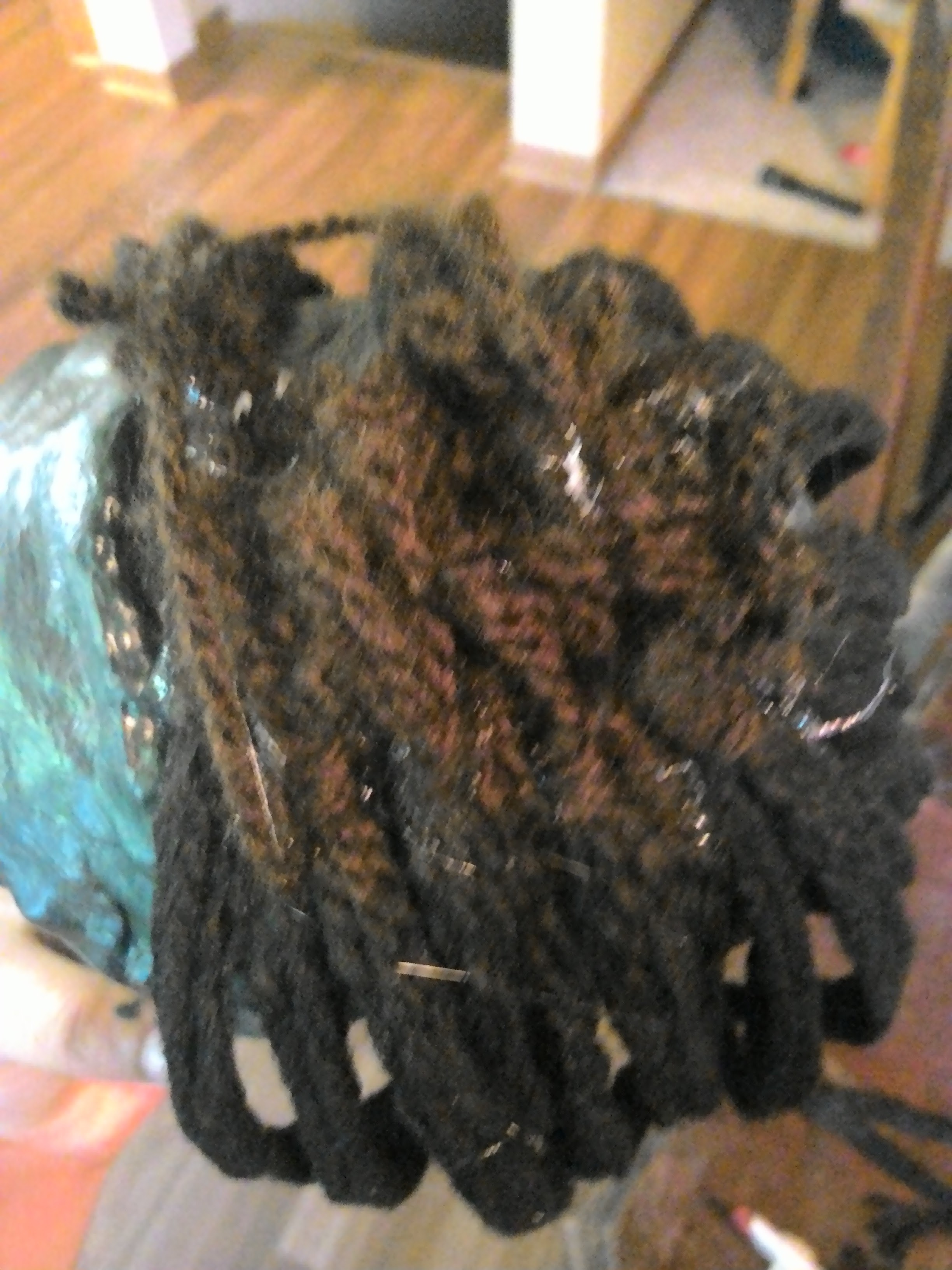 I glued the dreads on with hot glue, starting with the smaller ones, and ending with the larger ones.