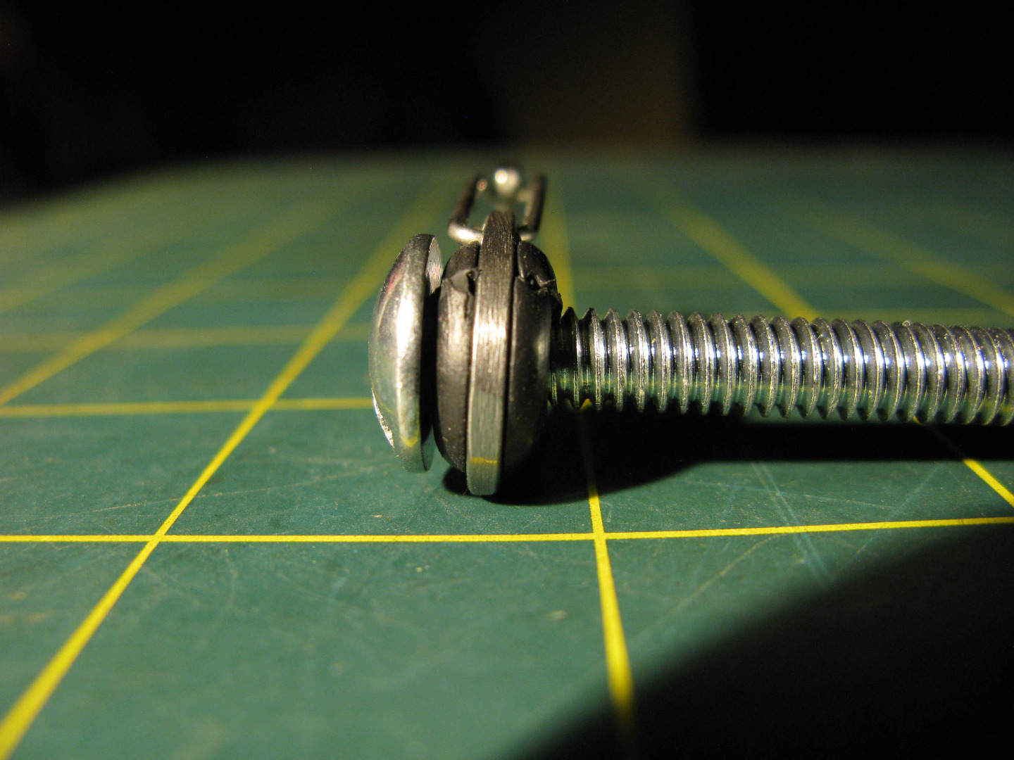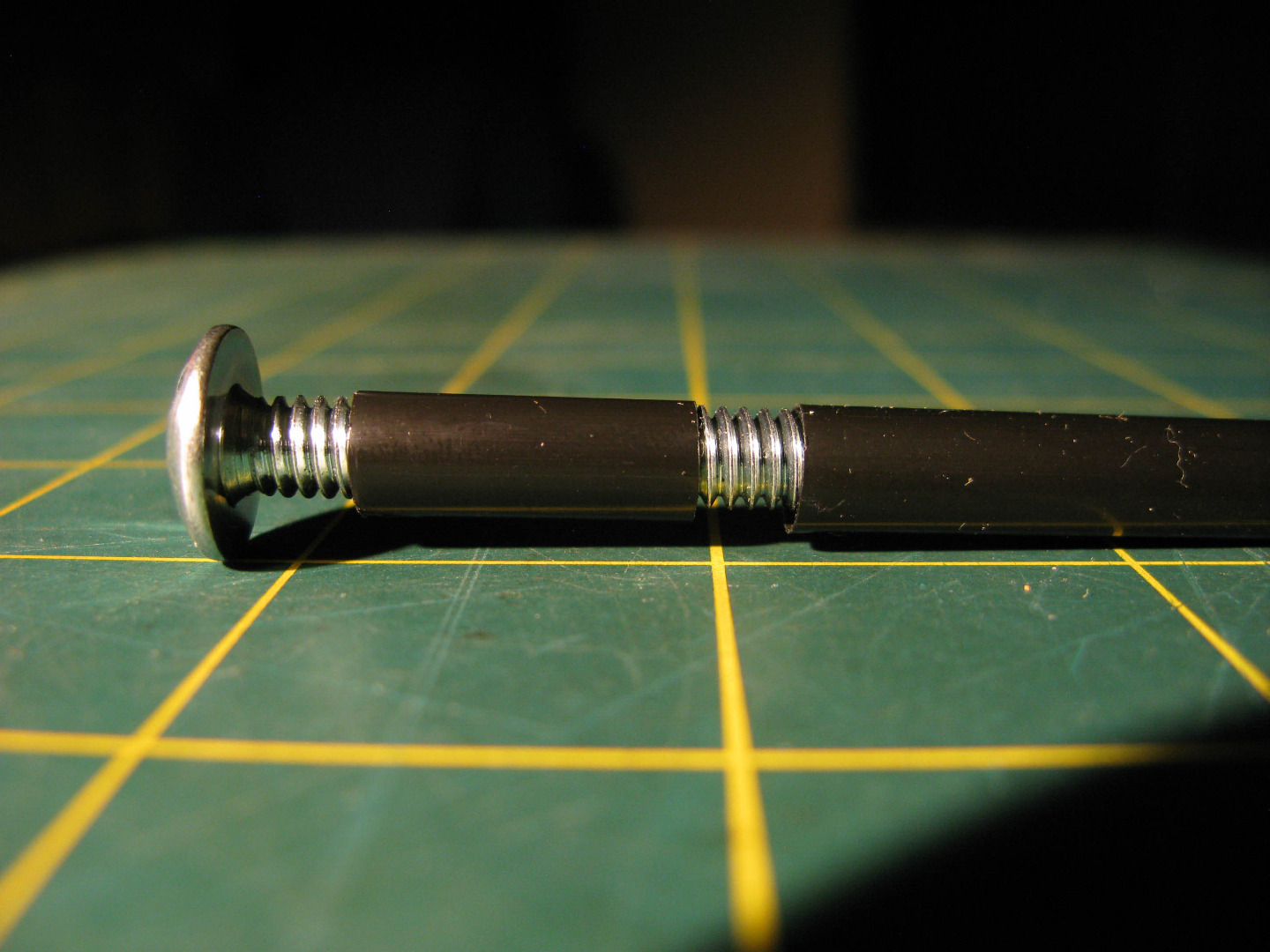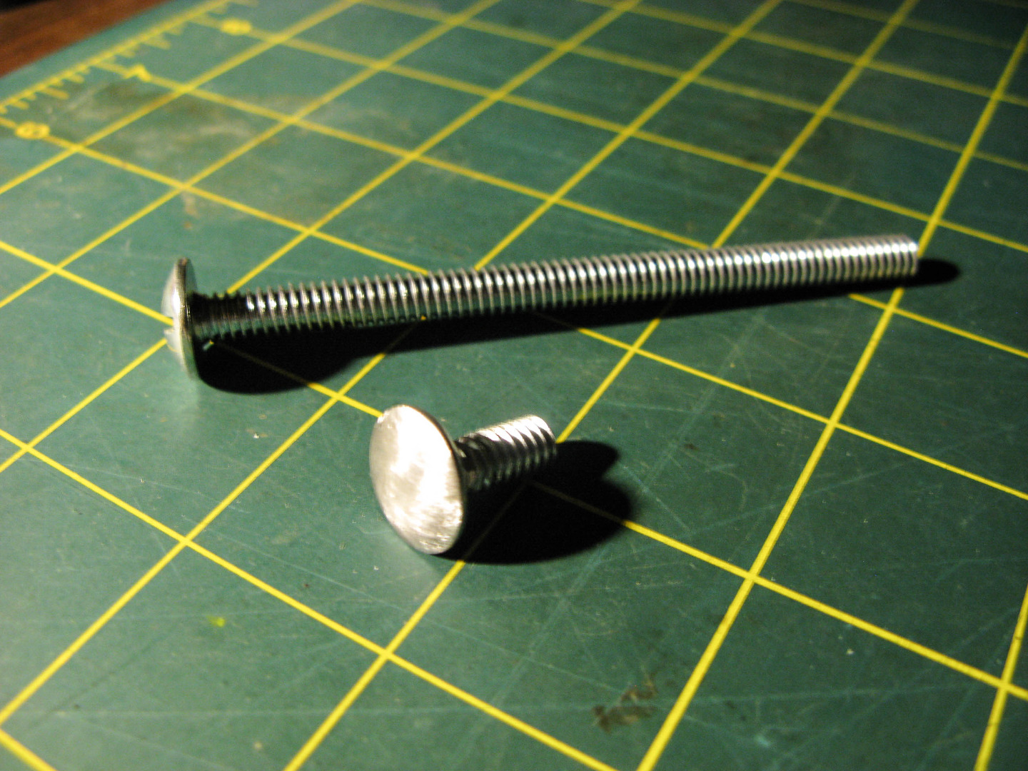 1 1/4" x 3/4" round head threaded bolt [I cut one down from a longer size]