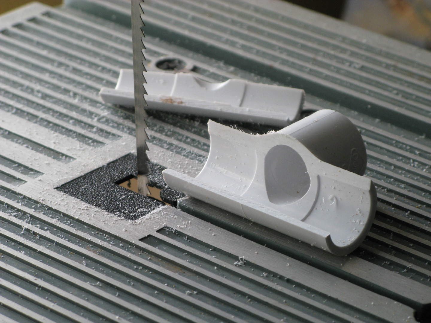 Once the PVC pieces are shaped, it's time to drill the holes.