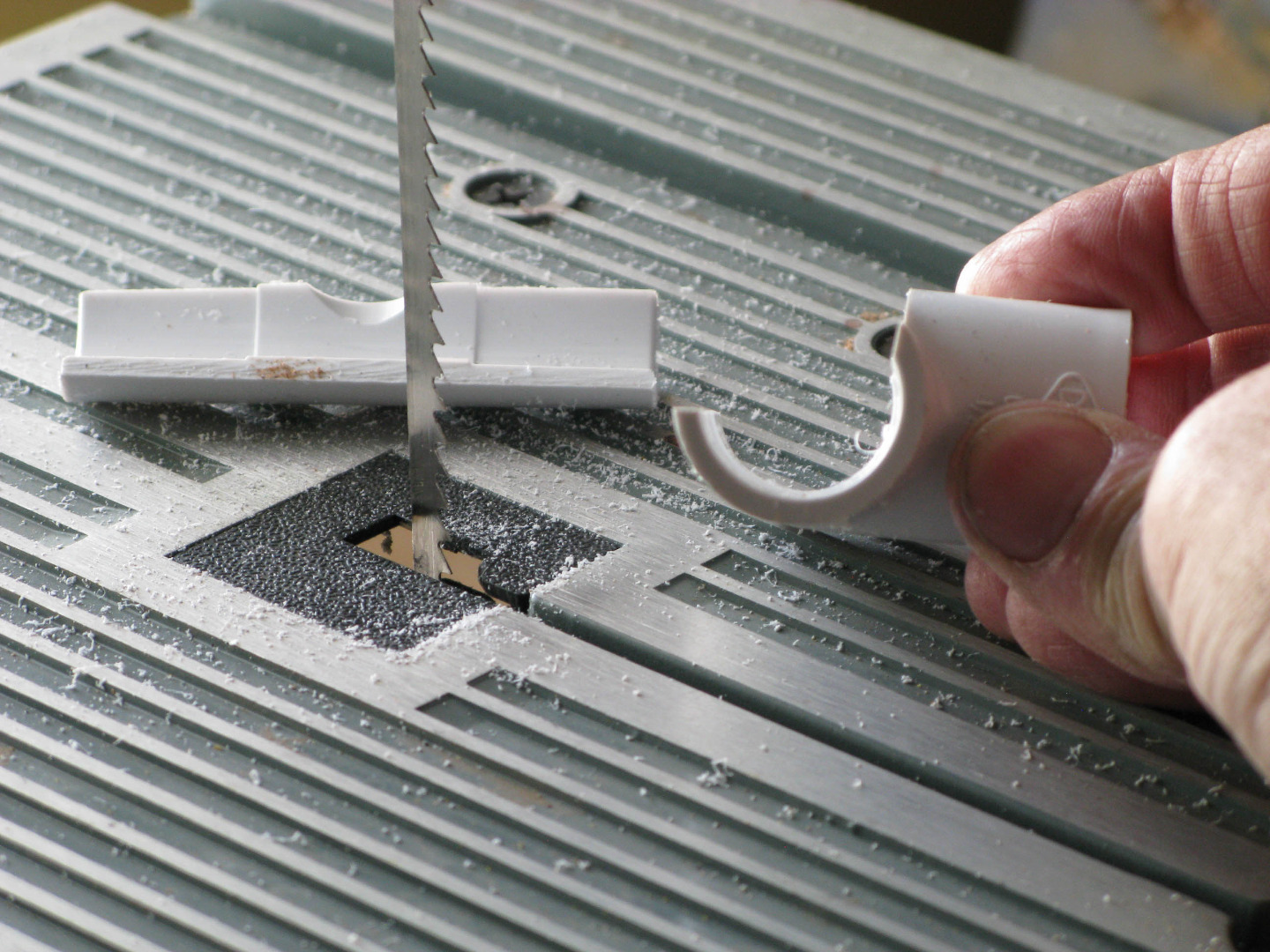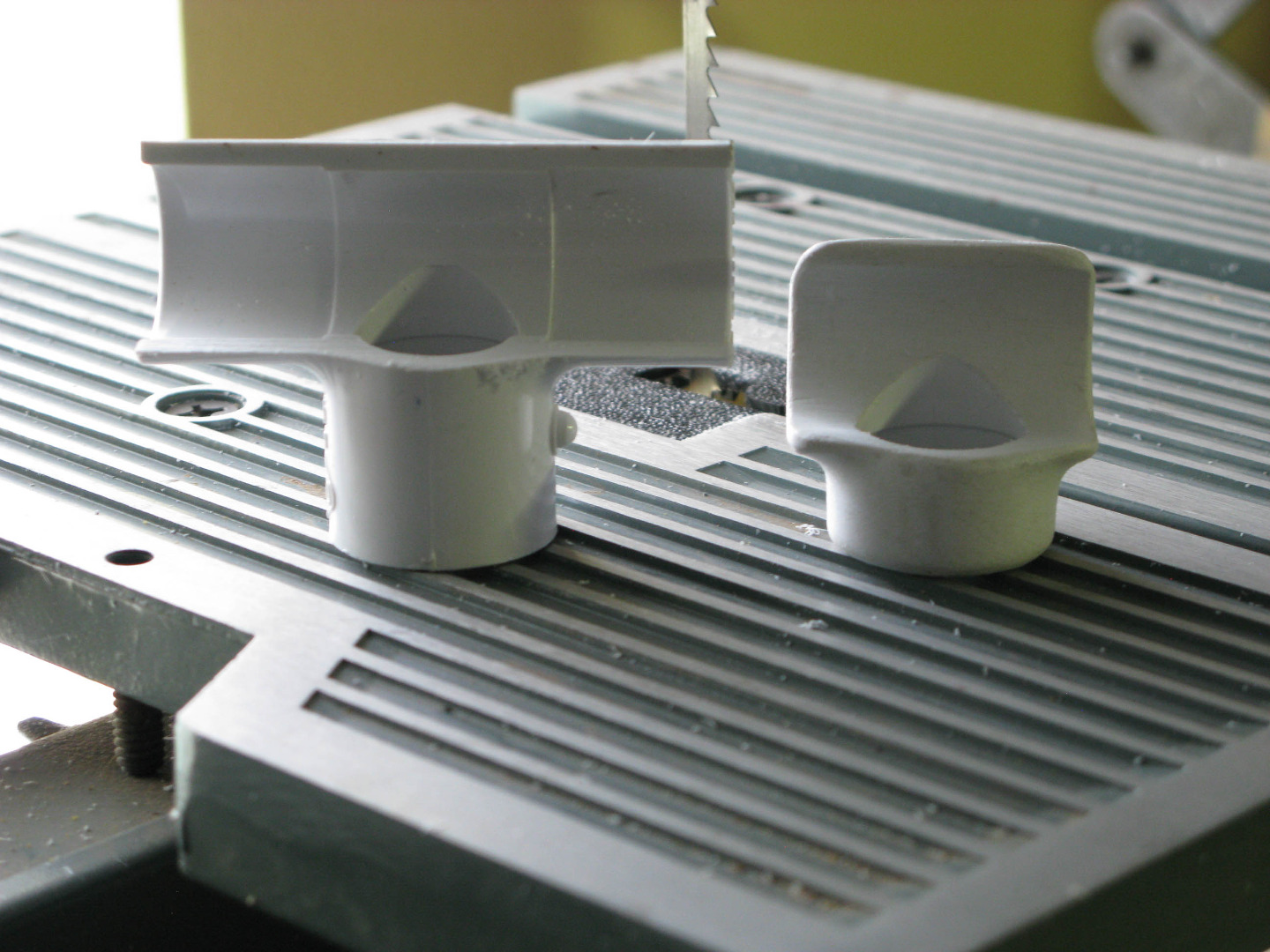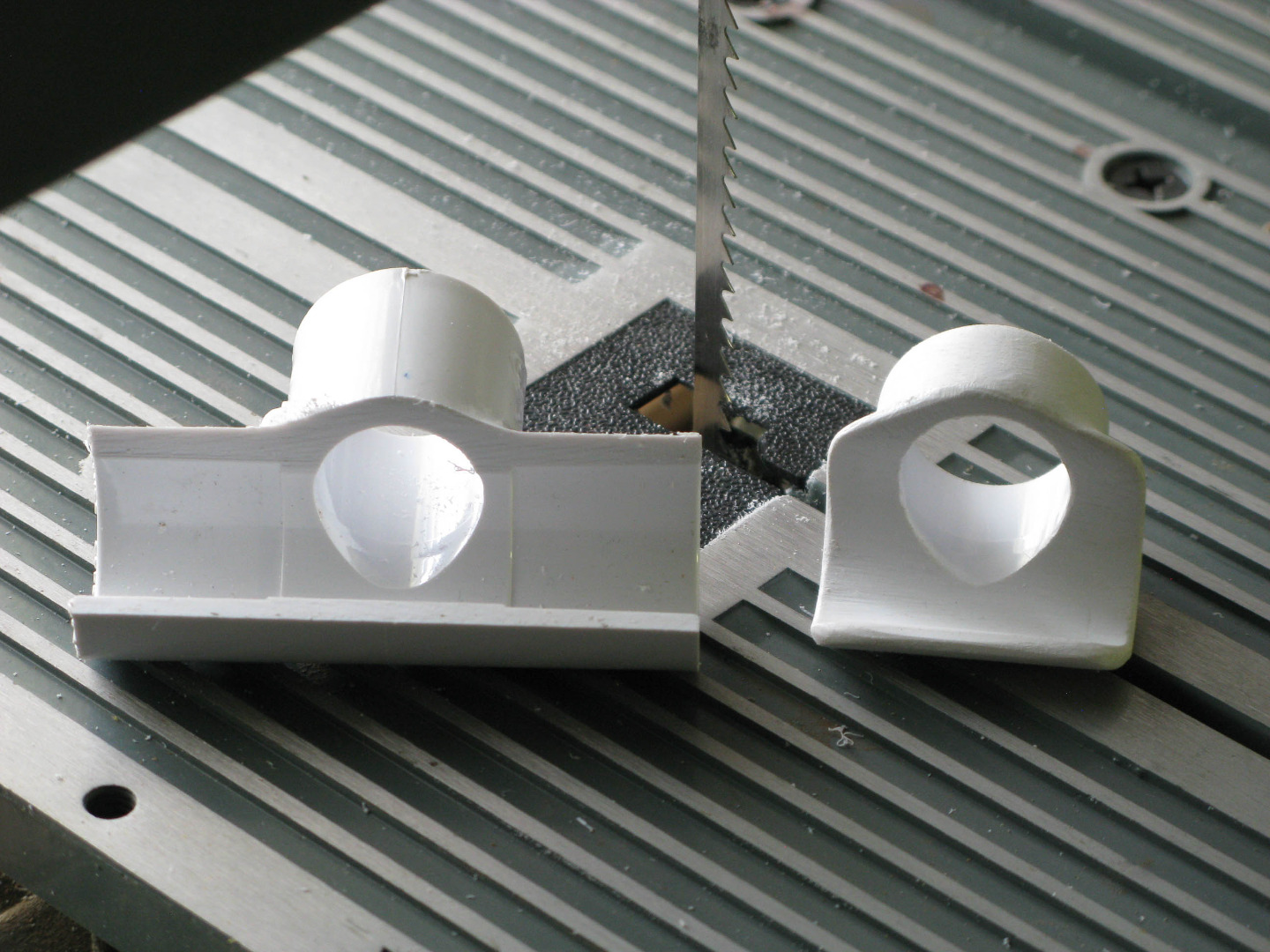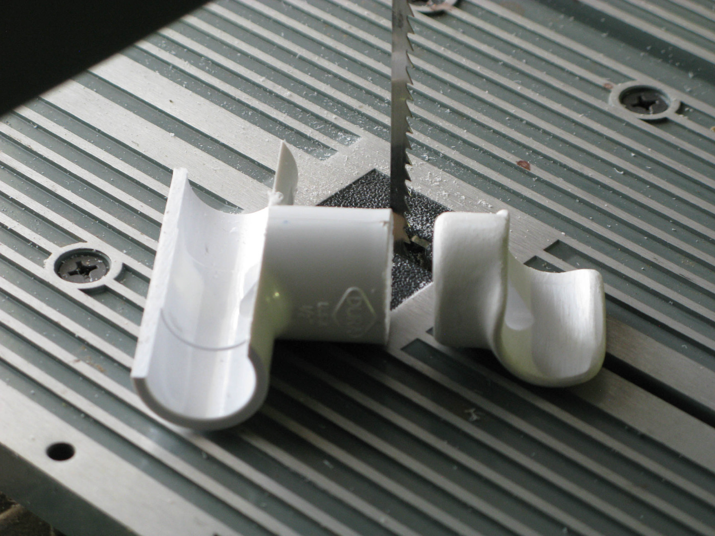 Cut the PVC pieces as shown creating the "cradle". You'll have to do a bit of sanding here to get smooth edges and to fit your model phone. I've reduced the width of the cradle to lighten the weight. There may be a raised portion of PVC in the middle of the "T" (depending on the manufacturer) that needs to be removed for a snug fit to your phone.