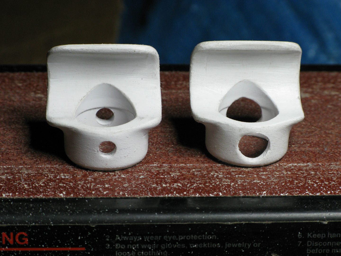 In a ventilated area, sand all of the Bondo off and smooth the edges for painting. Don't forget the raised area inside the "T" (depending on the manufacturer). File excess Bondo with a half round or "rat tail" file. You might want to use 100 grit for a first rough pass and 400 grit later to finish to a smooth surface. Spray paint to your desired color. Mine is semi-gloss black.