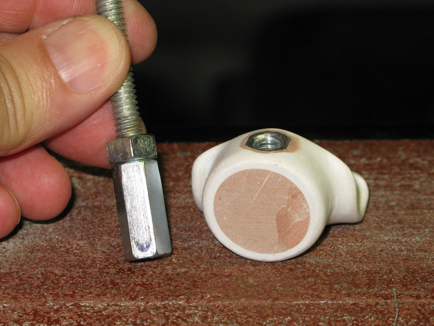 2 pieces of threaded rod] 1 3/8" rubber hole grommet (optional) [gives grip to the holding bolt]