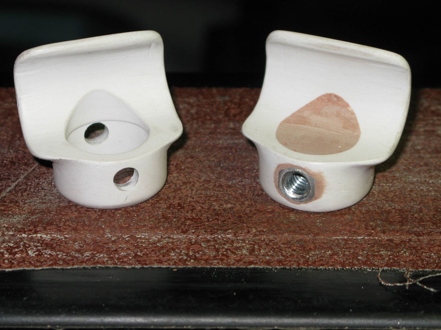 Once the coupler and nut are snug fit in the holes of the bottom piece, mix up some Bondo to fill in the empty cavity around the coupler and nut. Make sure you use enough to go over all the edges so it can be sanded smooth after it