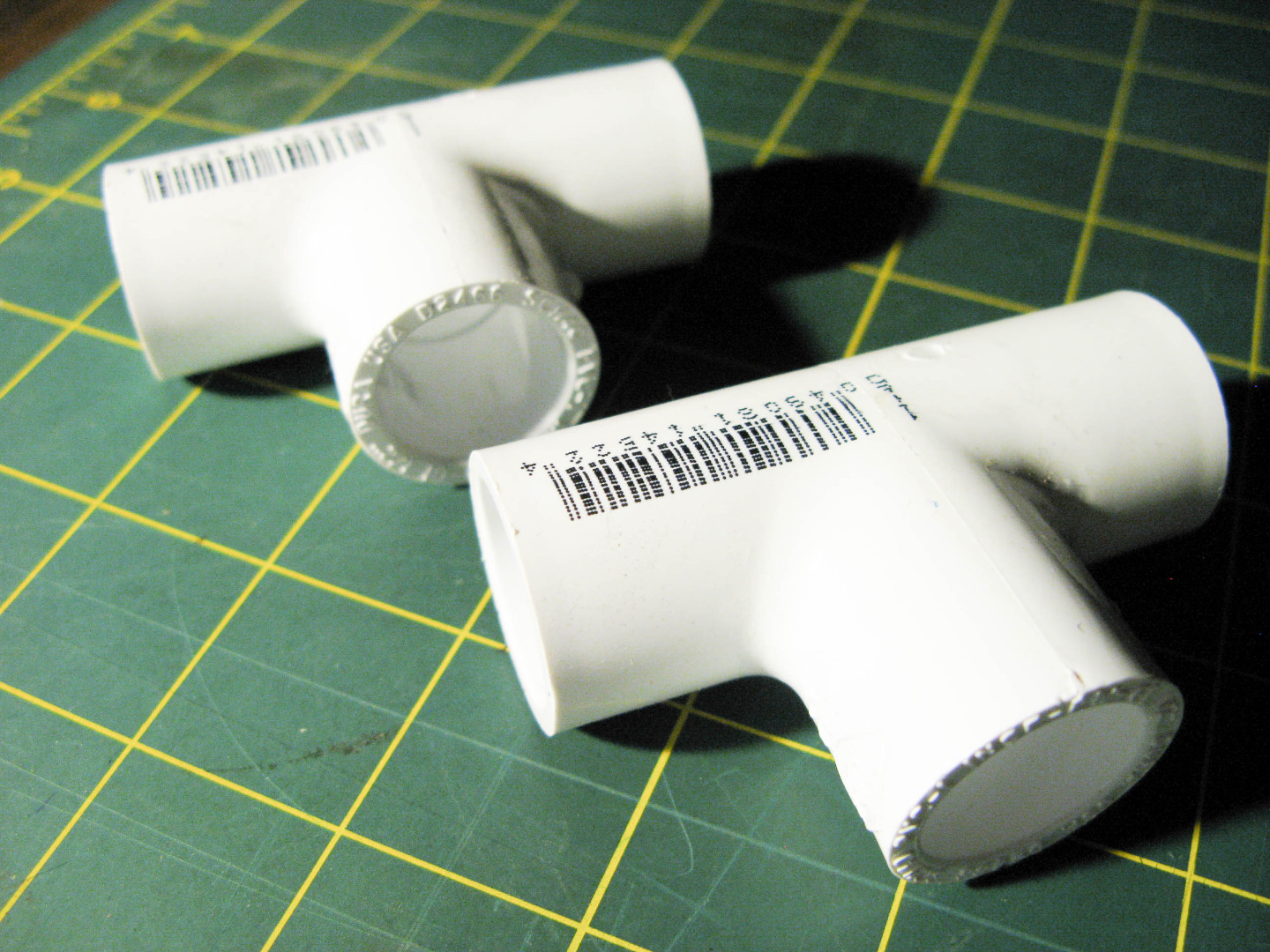 2 1/2" PVC "T" connectors [the halves of the holder]