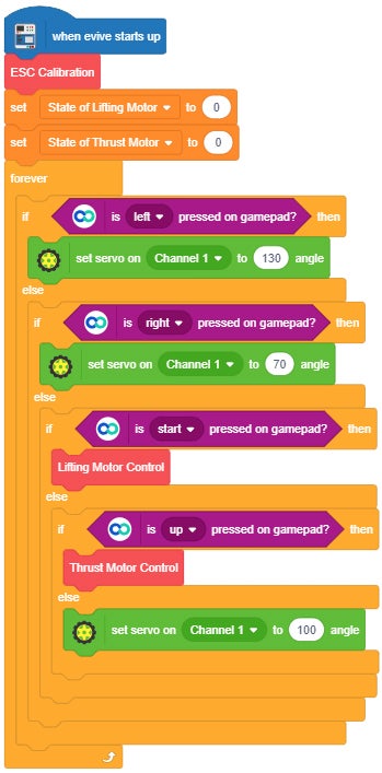 - Press the “START” button on the gamepad to start hovercraft lifting motors.