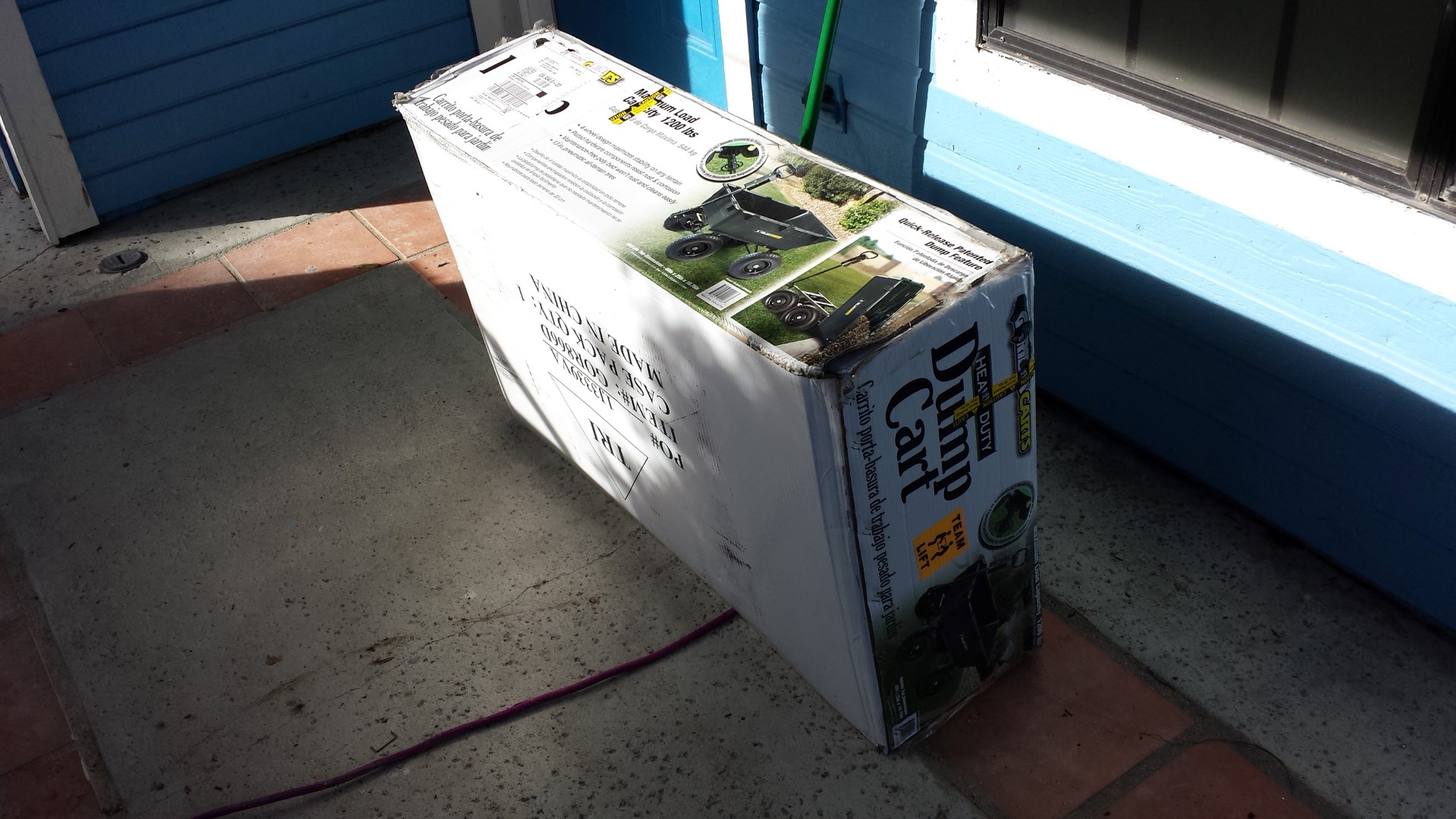 For this project, I started by assembling the gorilla cart out of the box and scratching my chin for a few weeks. I liked how easy it was to put together and how rugged it was, but the bin on top wasted a lot of space as far as I was concerned, and sat way up high. I wanted more weight down low, I wanted it to be longer, and I thought a rectangular cuboid shape would give me the most internal space.