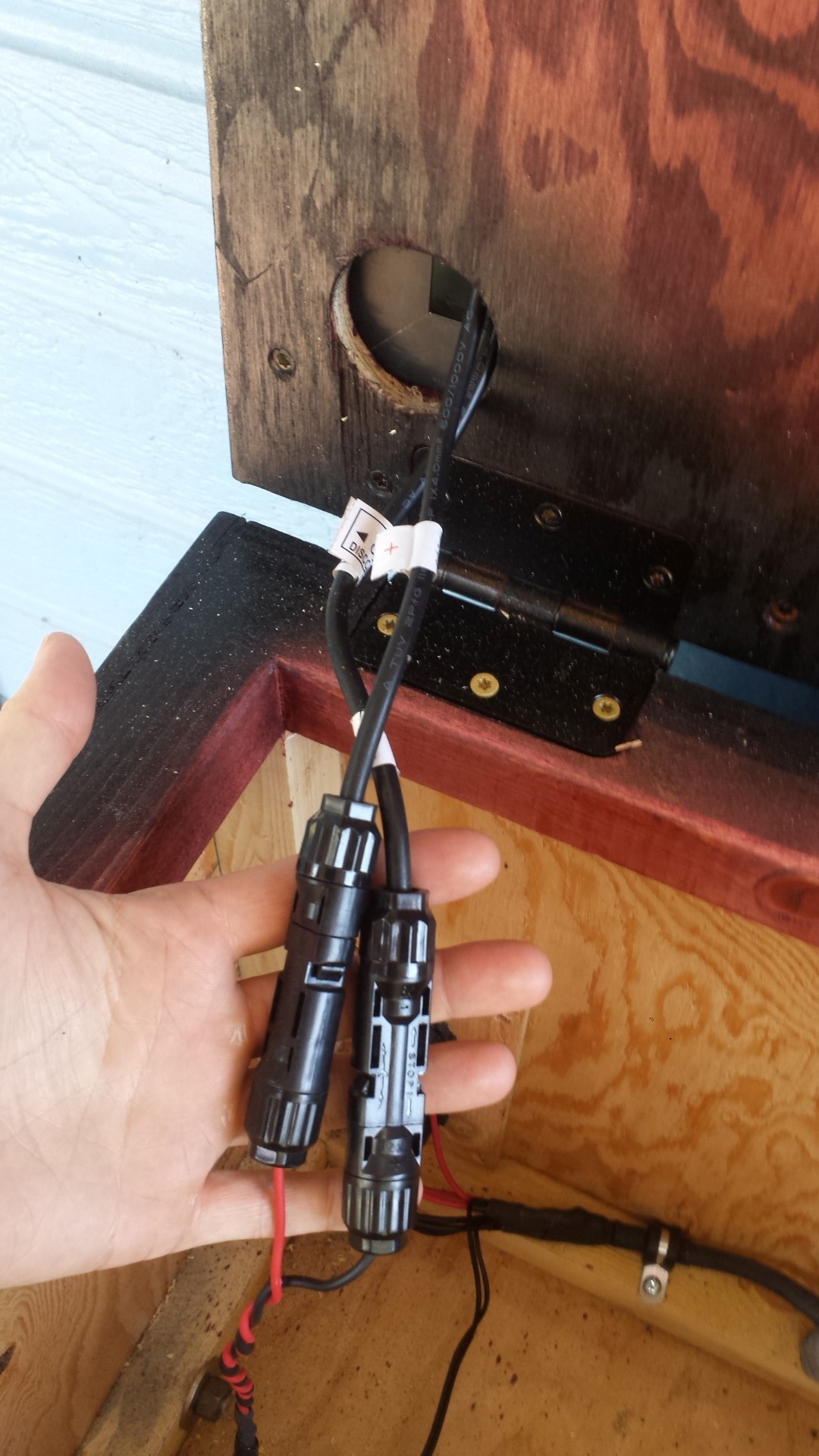 Solar Charge Controller: I used a cheap waterproof 5A unit from Amazon. Unfortunately it doesn't come with any mounting hardware, so I just spliced it in and told myself I'd mount it later... which is an adorable white lie.