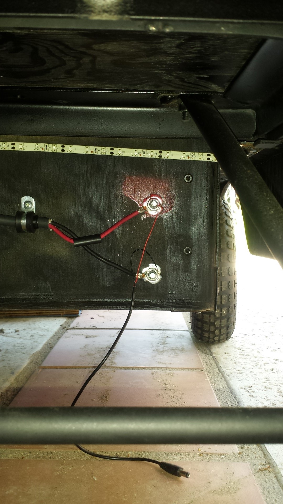 Lights: OK, the lights were a step too far perhaps. I had some red strip lights laying around and I thought it would be cool. I stuck them on in such a rush though and it shows. I didn't have time to mount a switch or anything so I haven't even ended up using these. These adhesive backed strip lights are also kind of garbage because as they warm up, they expand and wrinkle, pulling off the adhesive and falling off.