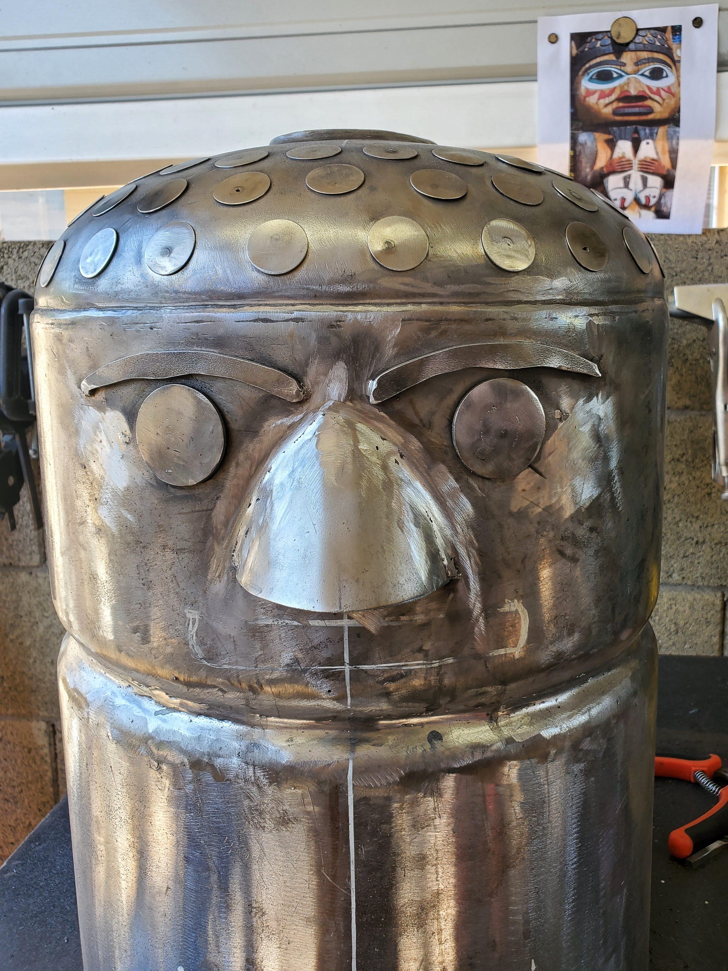 I start with a picture of an existing spirit that I like, and a discarded gas bottle. I strip off all the paint down to bare metal after thoroughly venting and cleaning the inside.