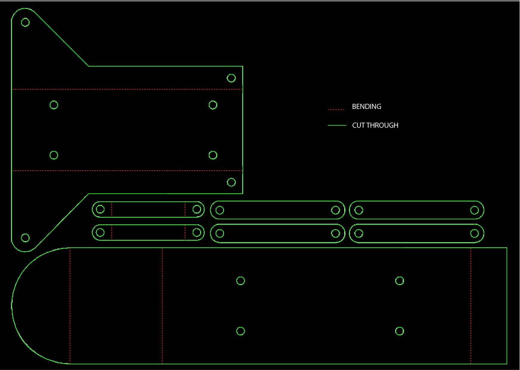 Use a vice and hammer to bend the metal pieces along the lines you scored halfway through in the previous step. Consult the above drawings to get the angles right.