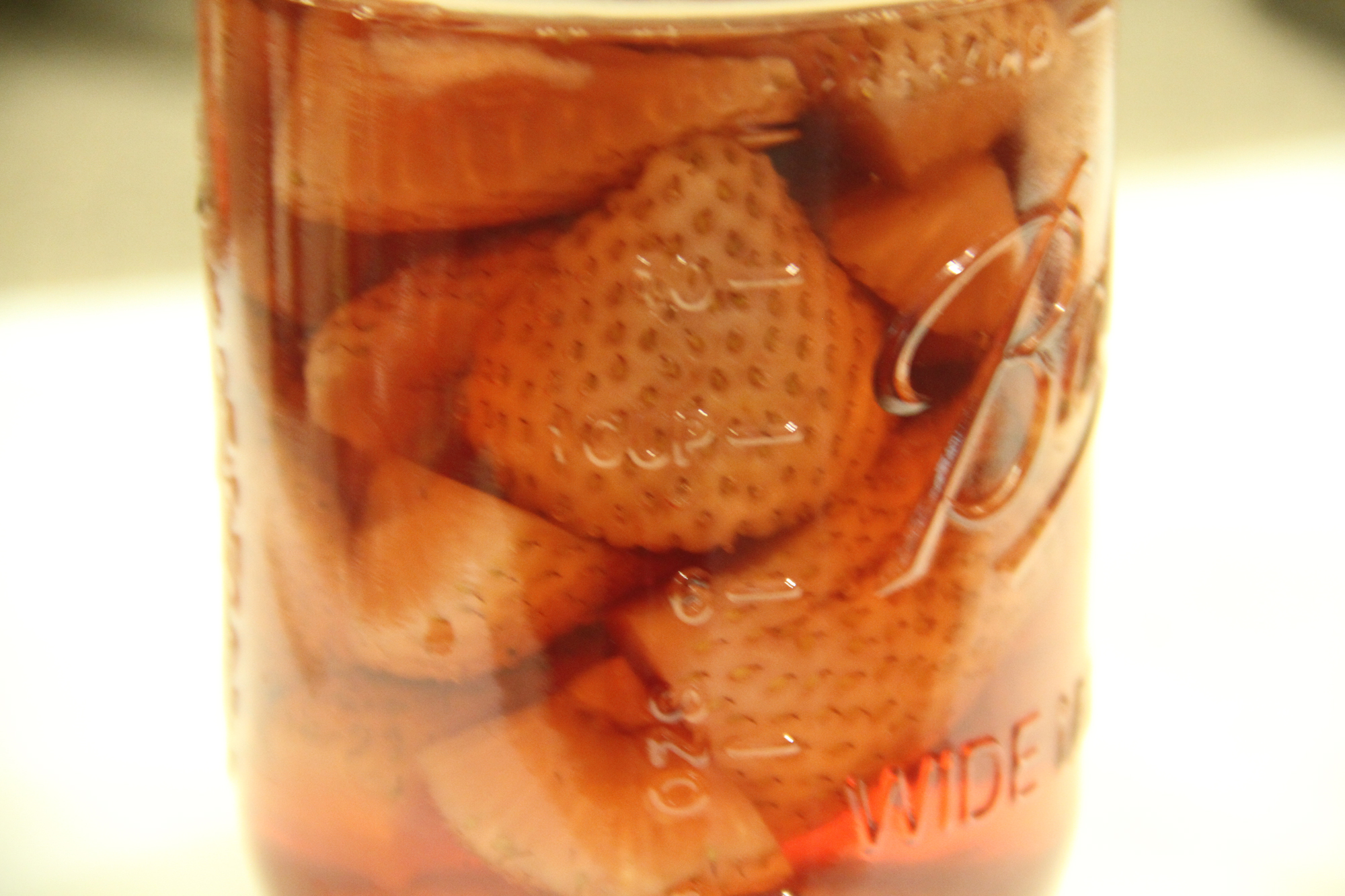 Fill the jar with fruit and top off with your alcohol. Then let it sit for 2 days to a week. You can let it sit longer if you desire.