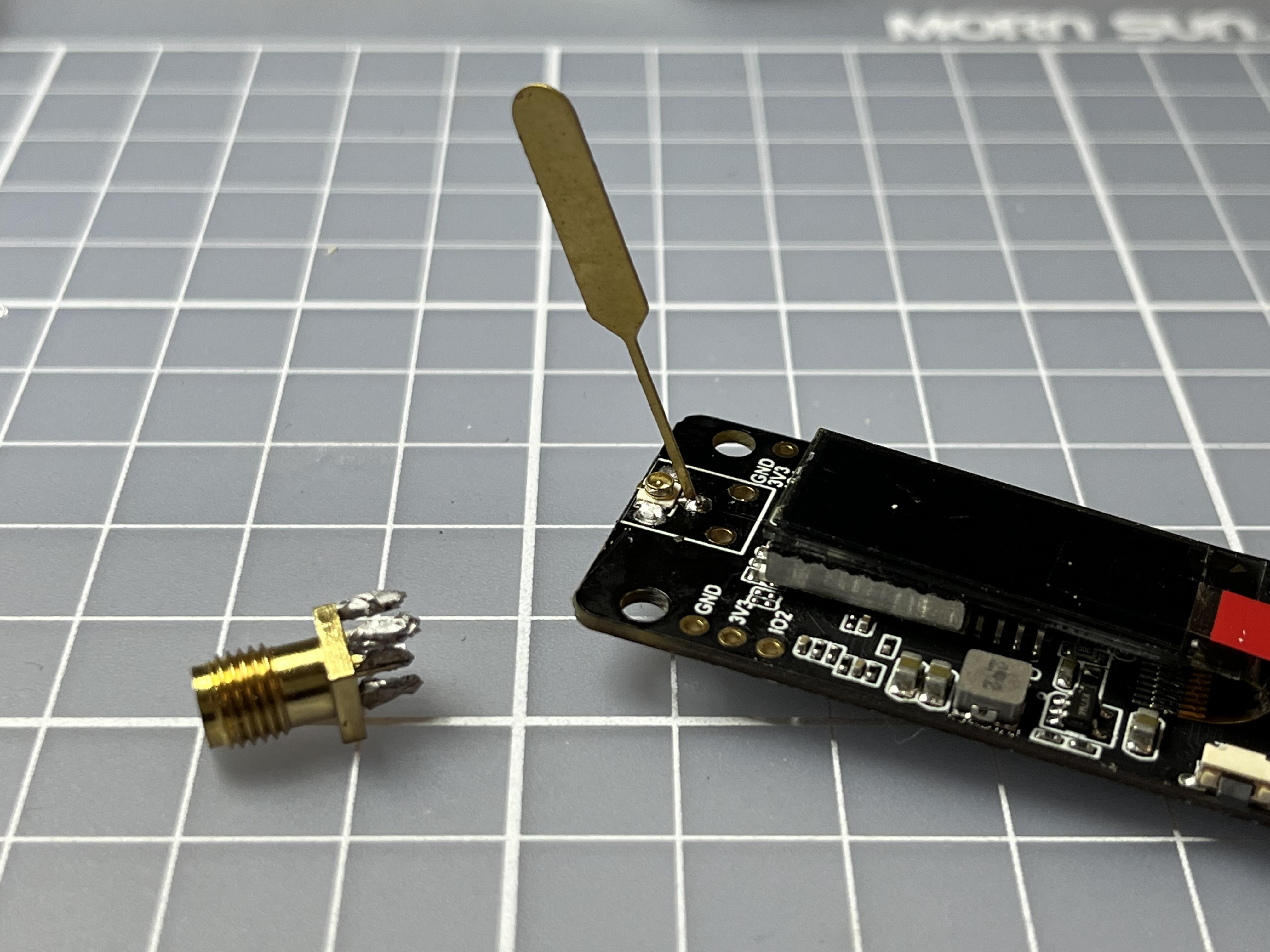 T-Journal have an edge mount SMA connector originally. I would like the antenna perpendicular to the board, so I resoldering and replace it. There are various 2.4GHz antenna options you can find on the web.