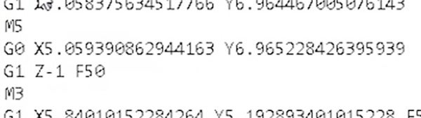 - Throughout the rest of the code, everytime you see an “F50” command, place an “M3” command immediately after it on the next line.