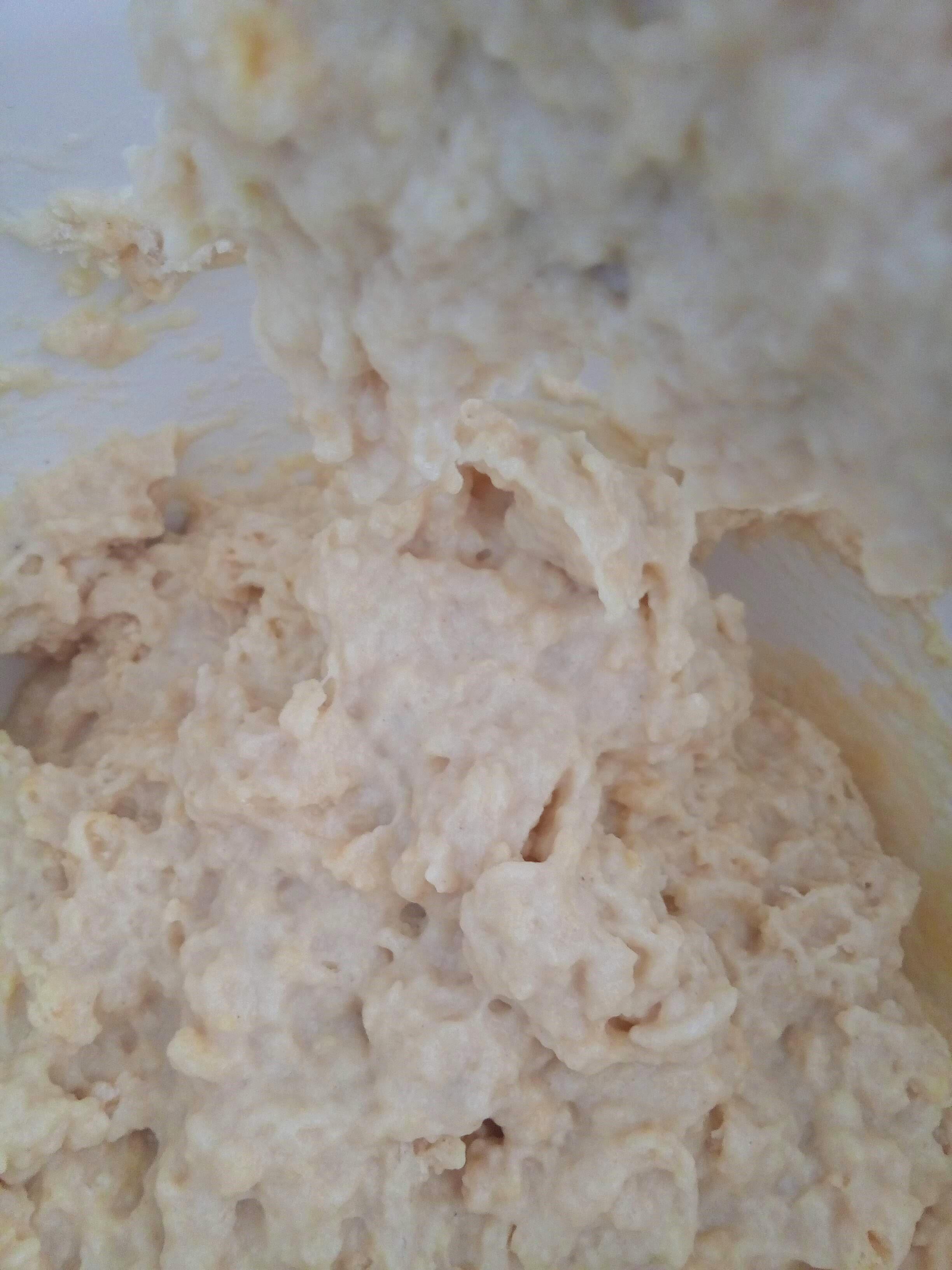 To make the dough mix the eggs fully with the flour and the a grip of salt. The goal is to have a runny but not fully liquid dough. Use a bit of water if the dough is really dry or a bit of flour if the dough reminds you of a liquid. The consistency is perfect, when the dough is runny, but needs a moment to fall back into the bowl, when you take it out. Cover the bowl and set it aside.