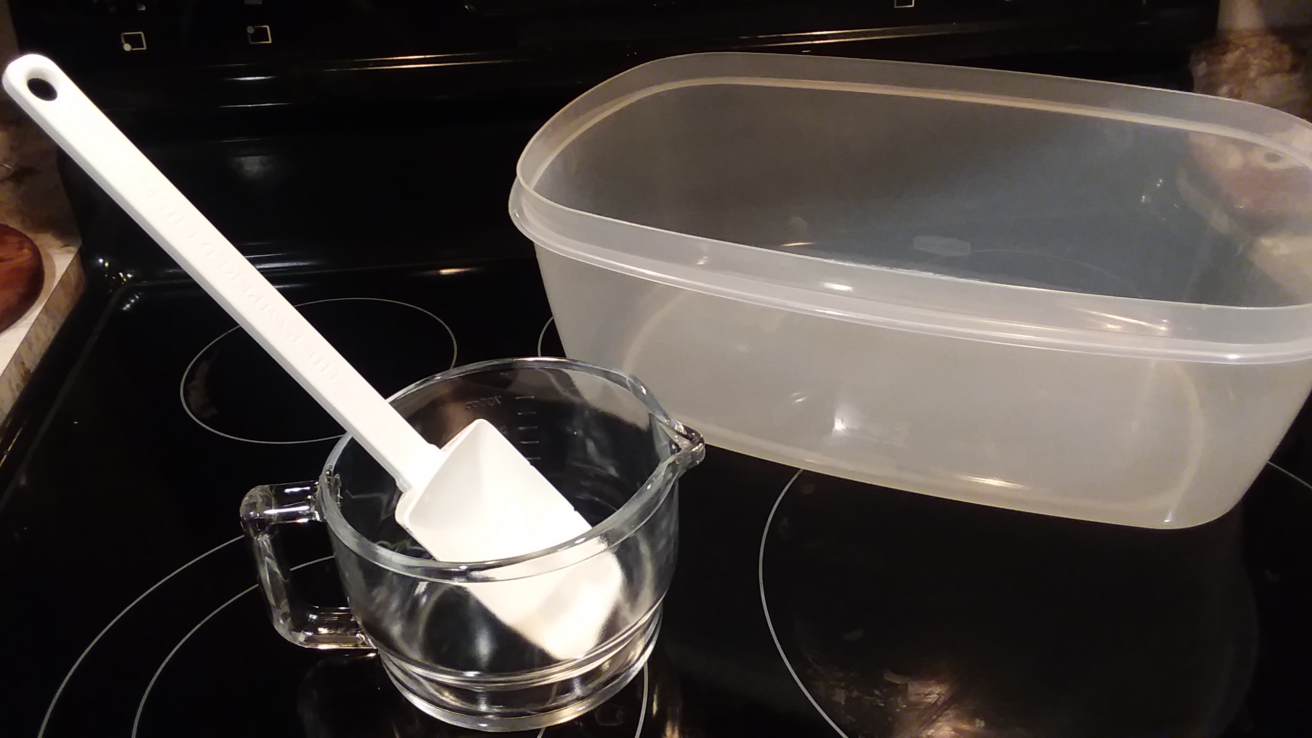 For your utensils, you will need a rubber scraper or spatula, a measuring cup, and a large tub or large space with tin foil.