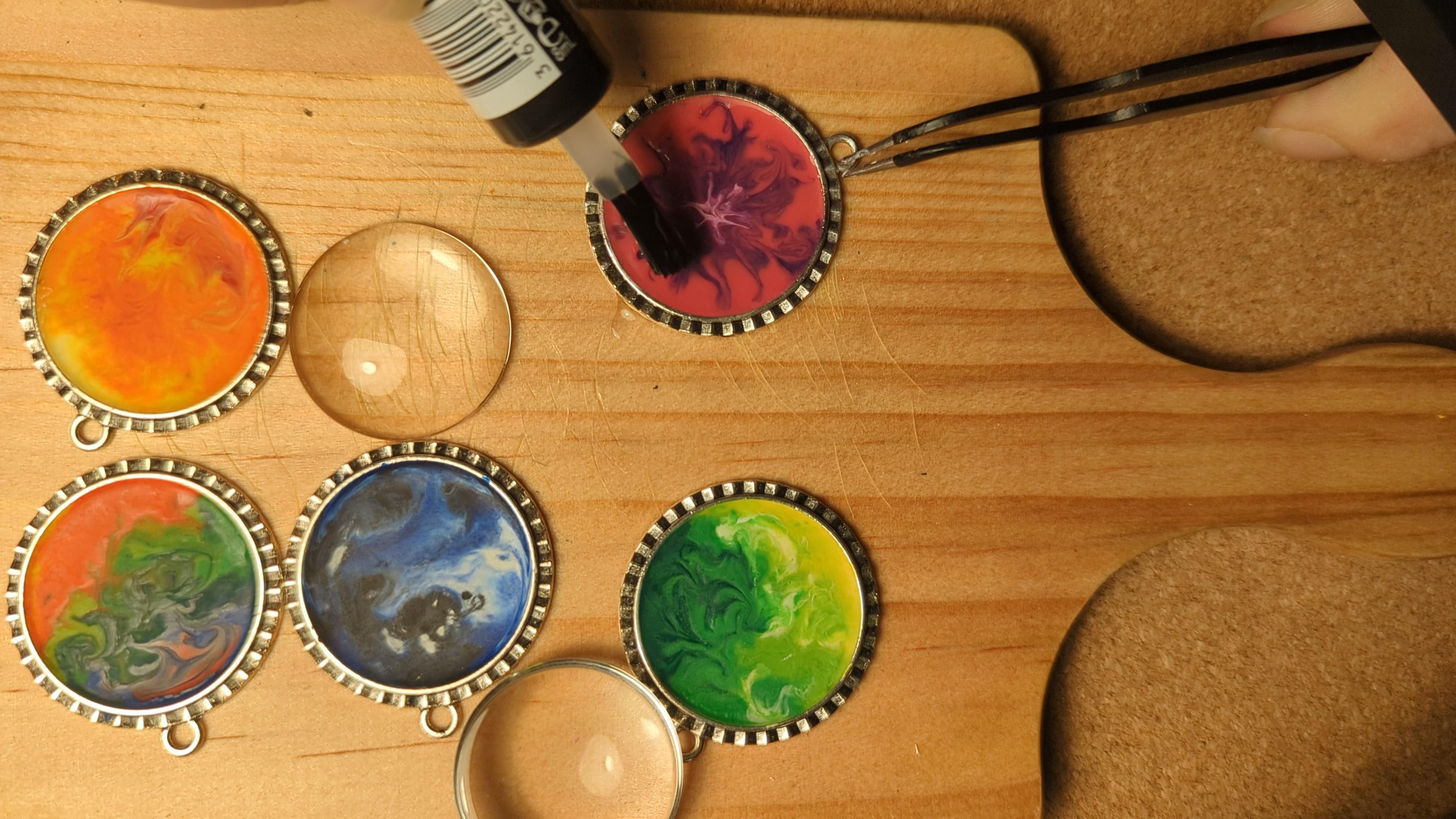 If you are using pendants without glass cabochons, you can use a transparent nail polish to protect the design. Top coat would be even better as it dries harder. Several thin layers will do the job.