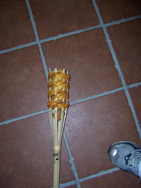 Fist take Tiki torch apart, leave the bottom wire loop in place.