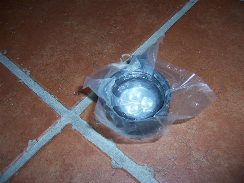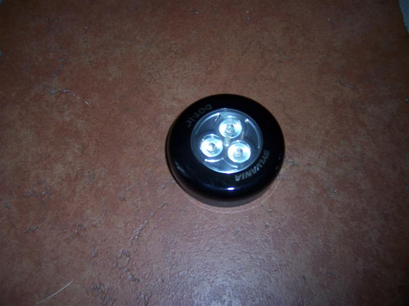 Use electrical tape on the edges to attach the Dot It to the outside of the cap. Take the plastic sheet and place it in the cap. Turn the light on (depress it) and attach it to the bottle (with water) for a trial run if you tighten it it should not leak.