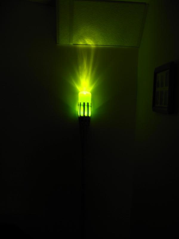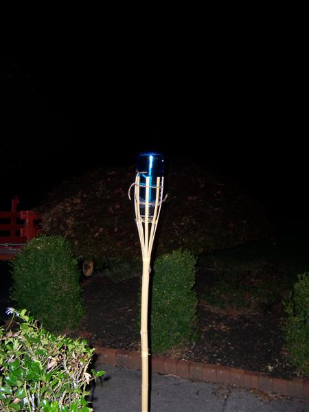 A few years back, a company named Guyot made a product called firefly a Nalgene bottle light. They have since stopped making it. I and my son have one as do a quite a few scouts in my troop. They looked really cool coming across a parade field at night in complete darkness. I thought what if you attached one to the end of a Tiki torch stick. I did this last summer for camp and it was a hit. The two OA leaders loved it, they used throughout camp for night events.