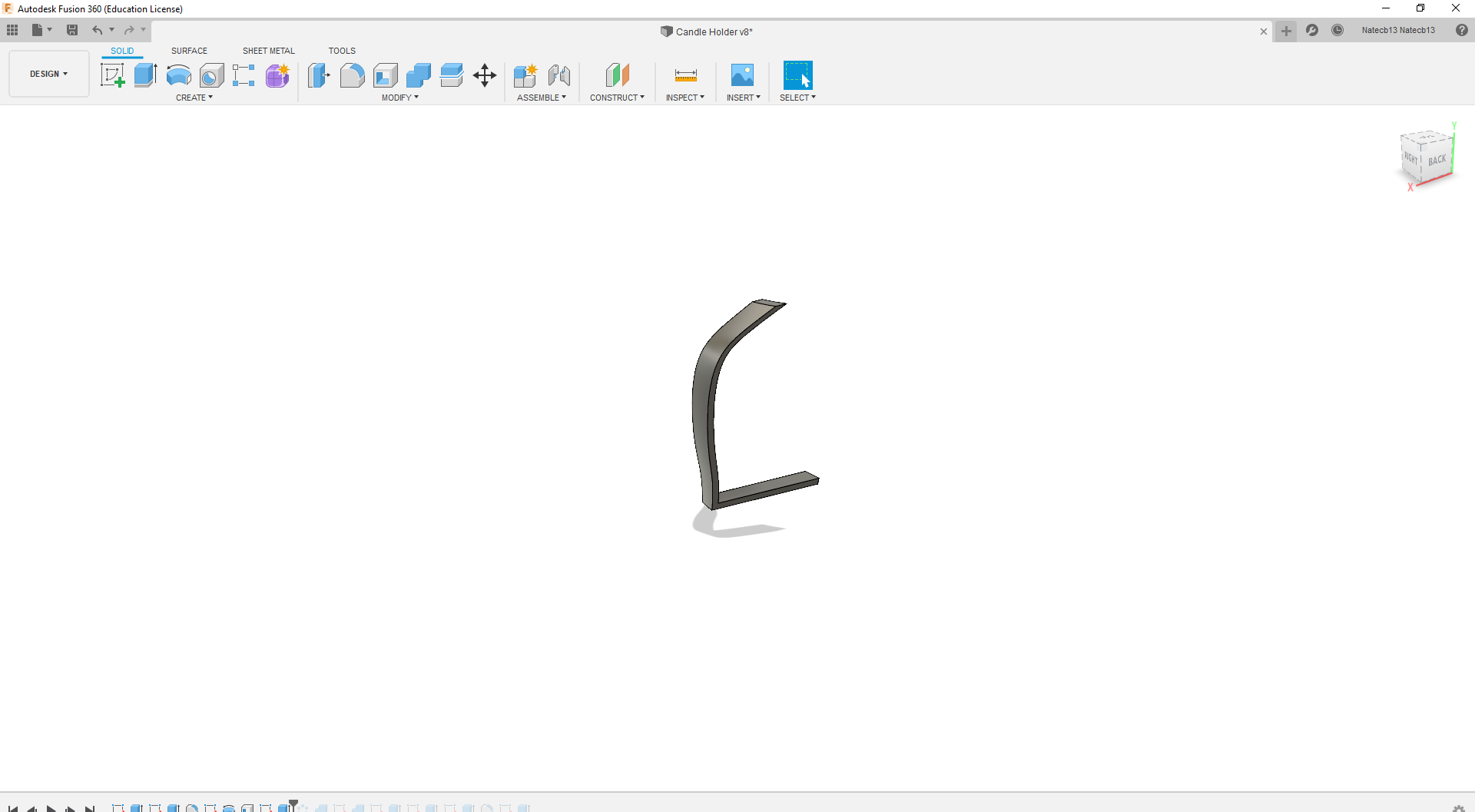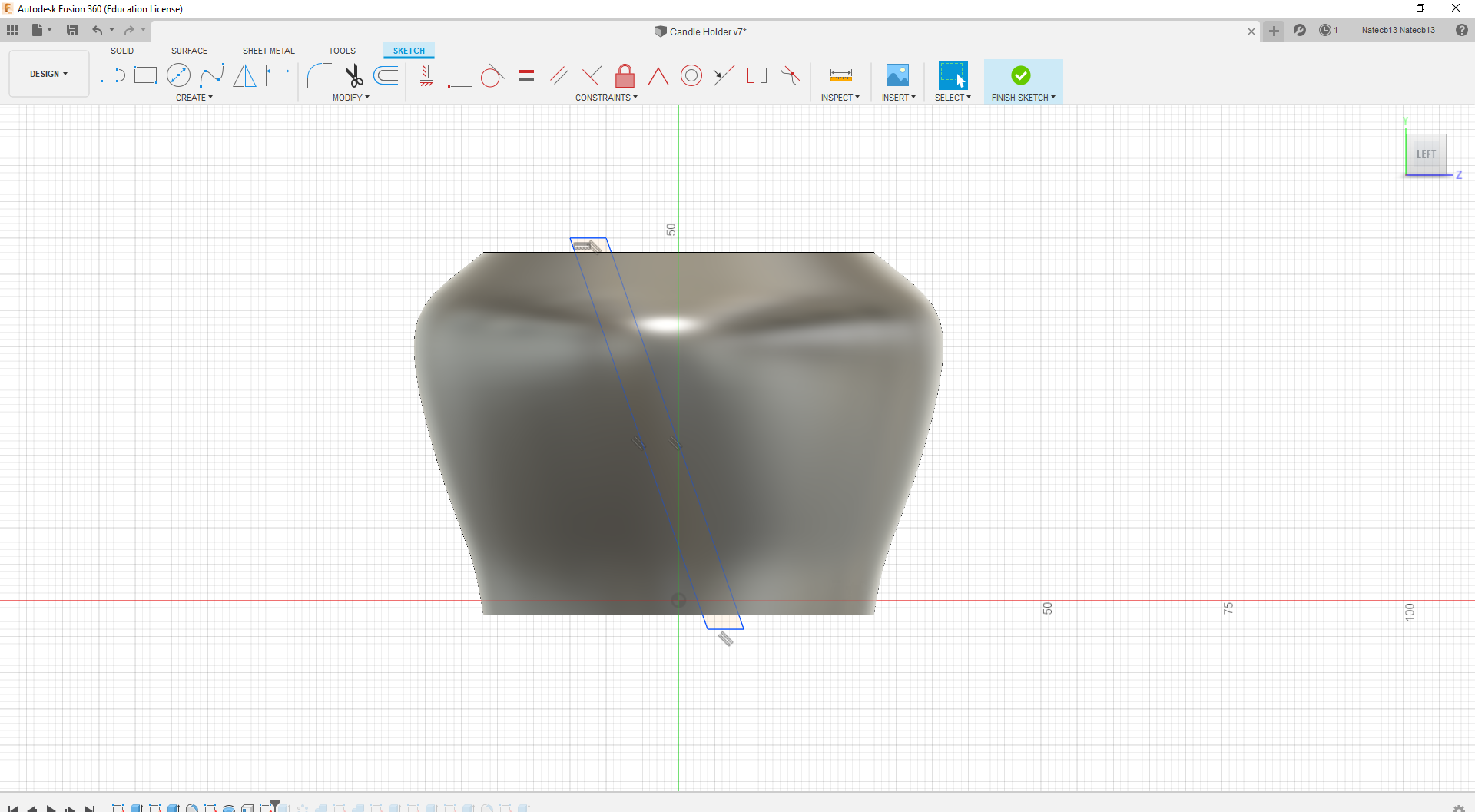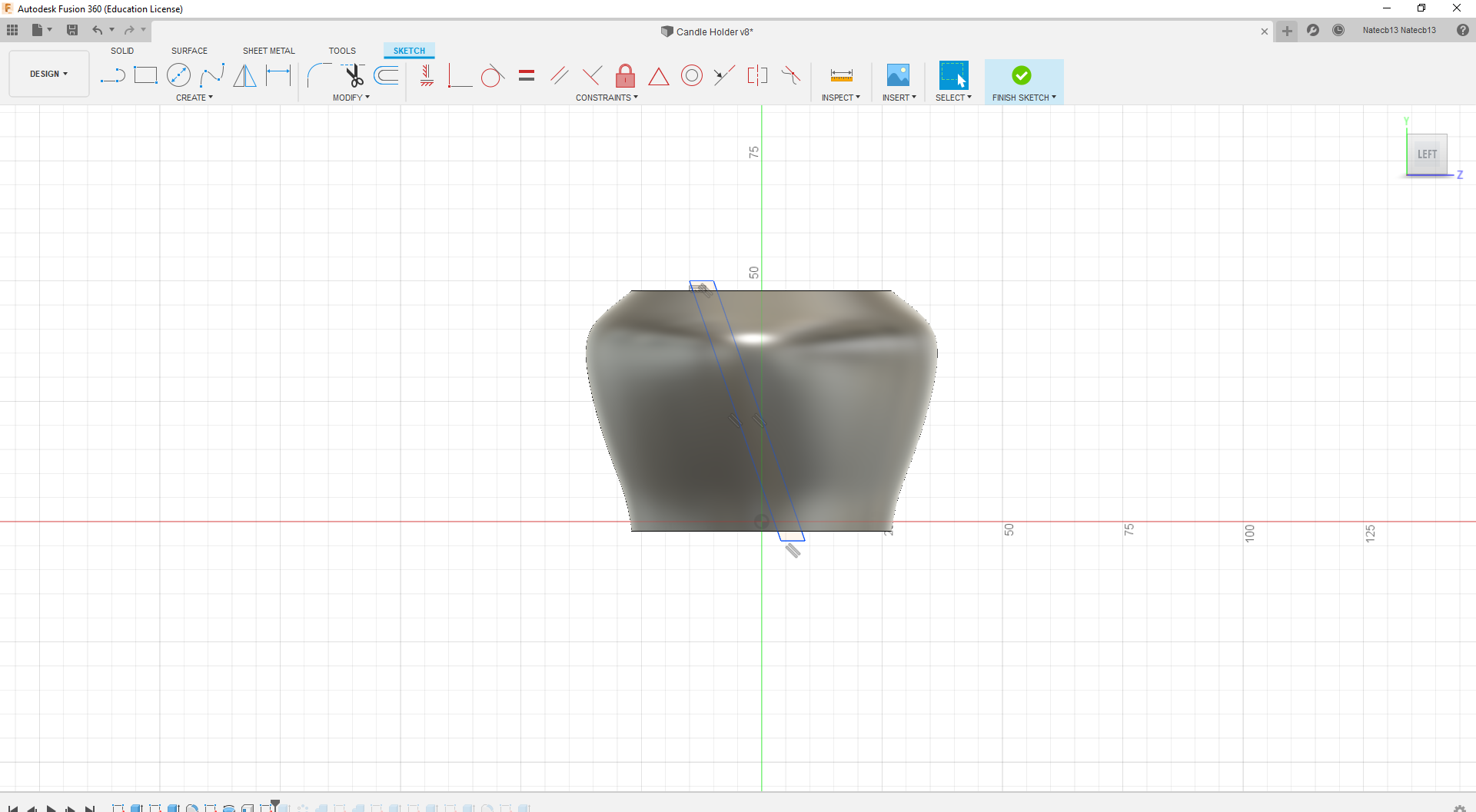 To make the main shape we will be using the revolve tool. First, we need to make the shape to revolve. Start a sketch on the XZ plane. Using the line tool, make a line that reaches through the center of the candle. This doesn't need to have an exact dimension, just make sure its a bit past the candle bottom and top. Make two lines reaching gout from the top and bottom of that line. See the first image of this step to get a better idea of the shape going for. Your holder doesn't have to have the same shape as mine! Be creative! Use the spline tool to create a curved line. Use the knobs and tools to change the slopes of your curve. Make sure that the spline closes off the shape. The shape should turn a slight orange color if it is correctly closed off. Select the revolve tool from the toolbar. Select the Z-axis as your rotating axis and the sketch we just drew for what we want to revolve. Revolve a full 360 degrees (this is the default value). We now have to hollow this body out to make it more like a bowl. Select the "Shell" tool from the toolbar. Select the body we just revolved and set and outer shell of 1.5mm. Great! We are almost done!