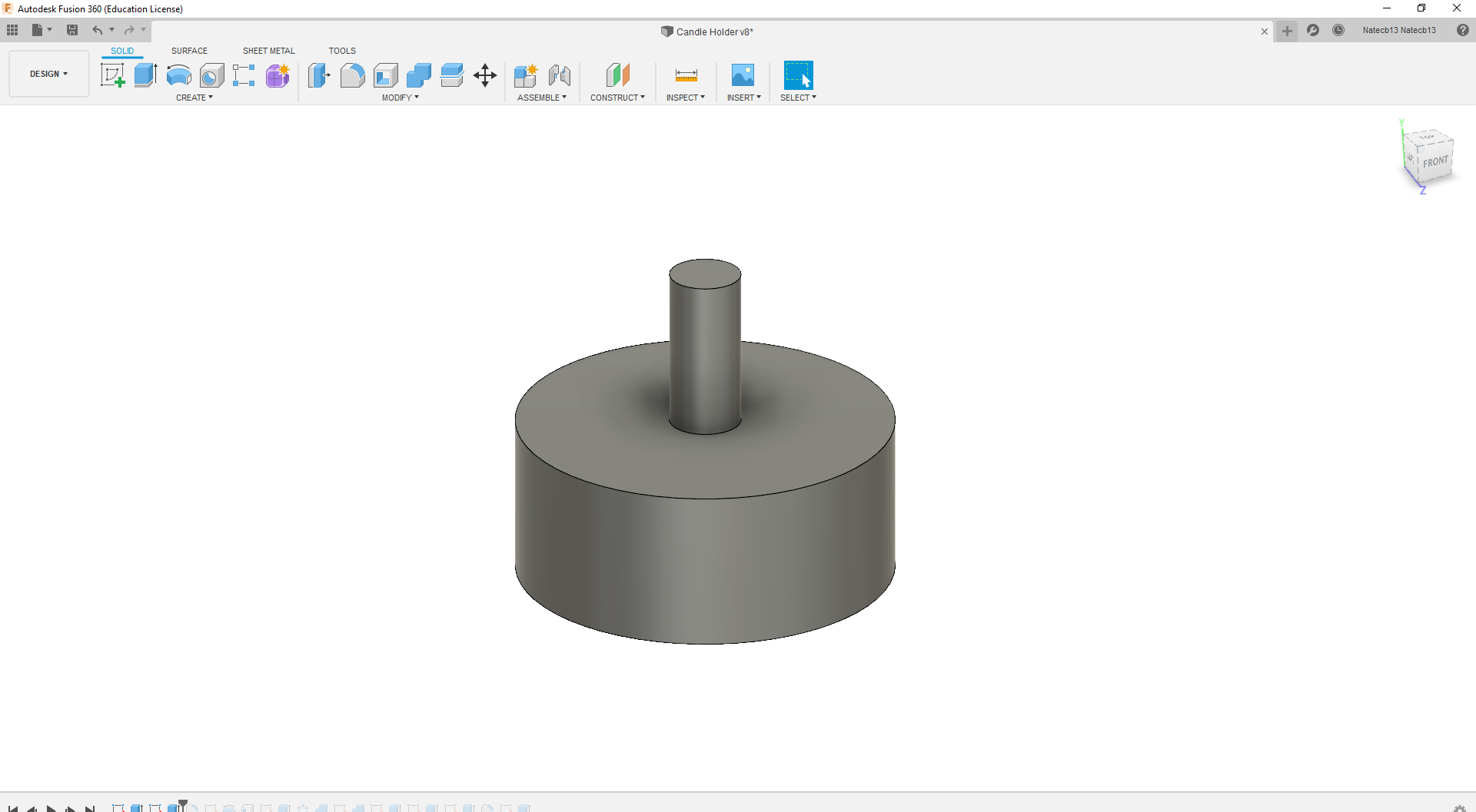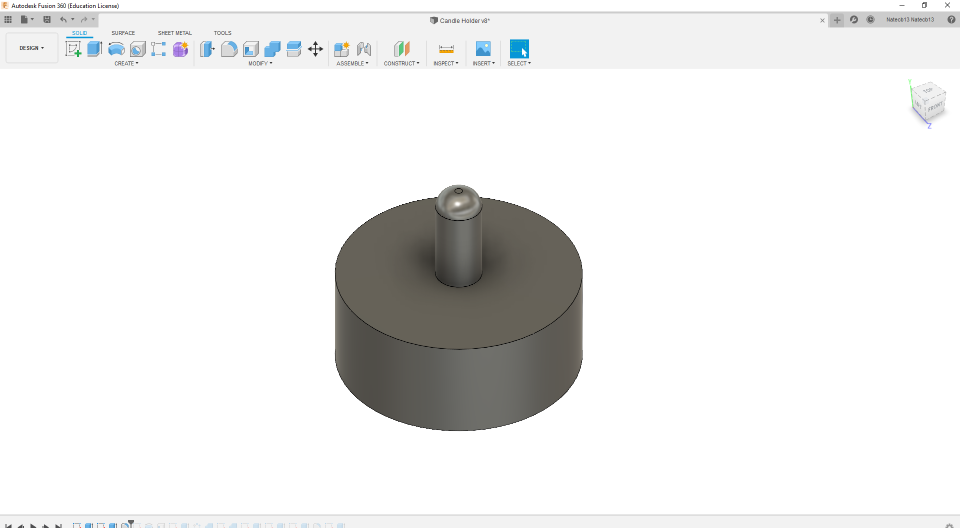 Extrude that sketch up 16mm. That is the candle body done.