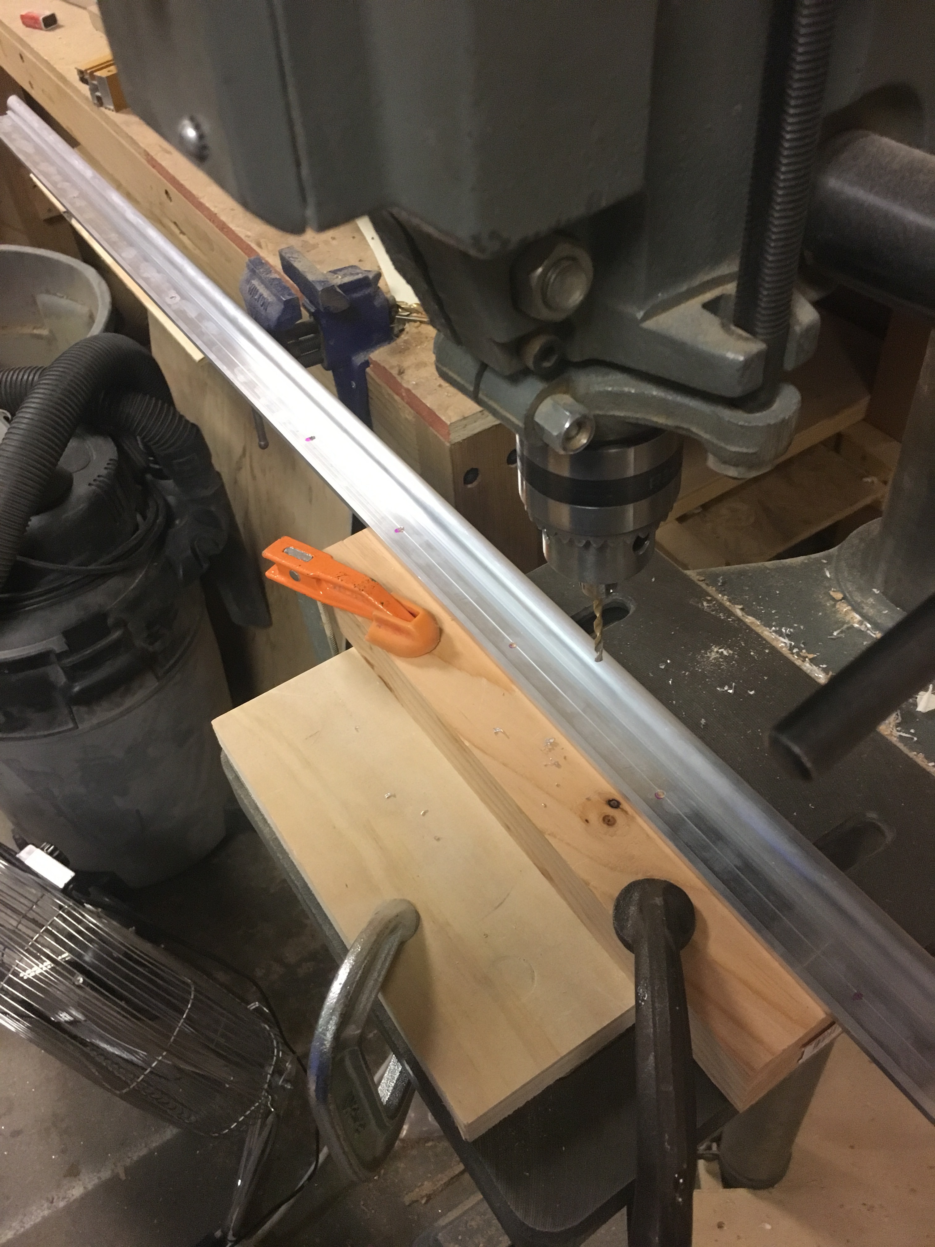 Building out the kitchen is just slow and time consuming. I used beetle kill pine as trim along all the sides, and I covered the edges with aluminum rails. I used a horizontal bandsaw (pictured) to custom cut all those little aluminum L-shapes. If you go this route, cut slow and use a ton a lubricating oil.