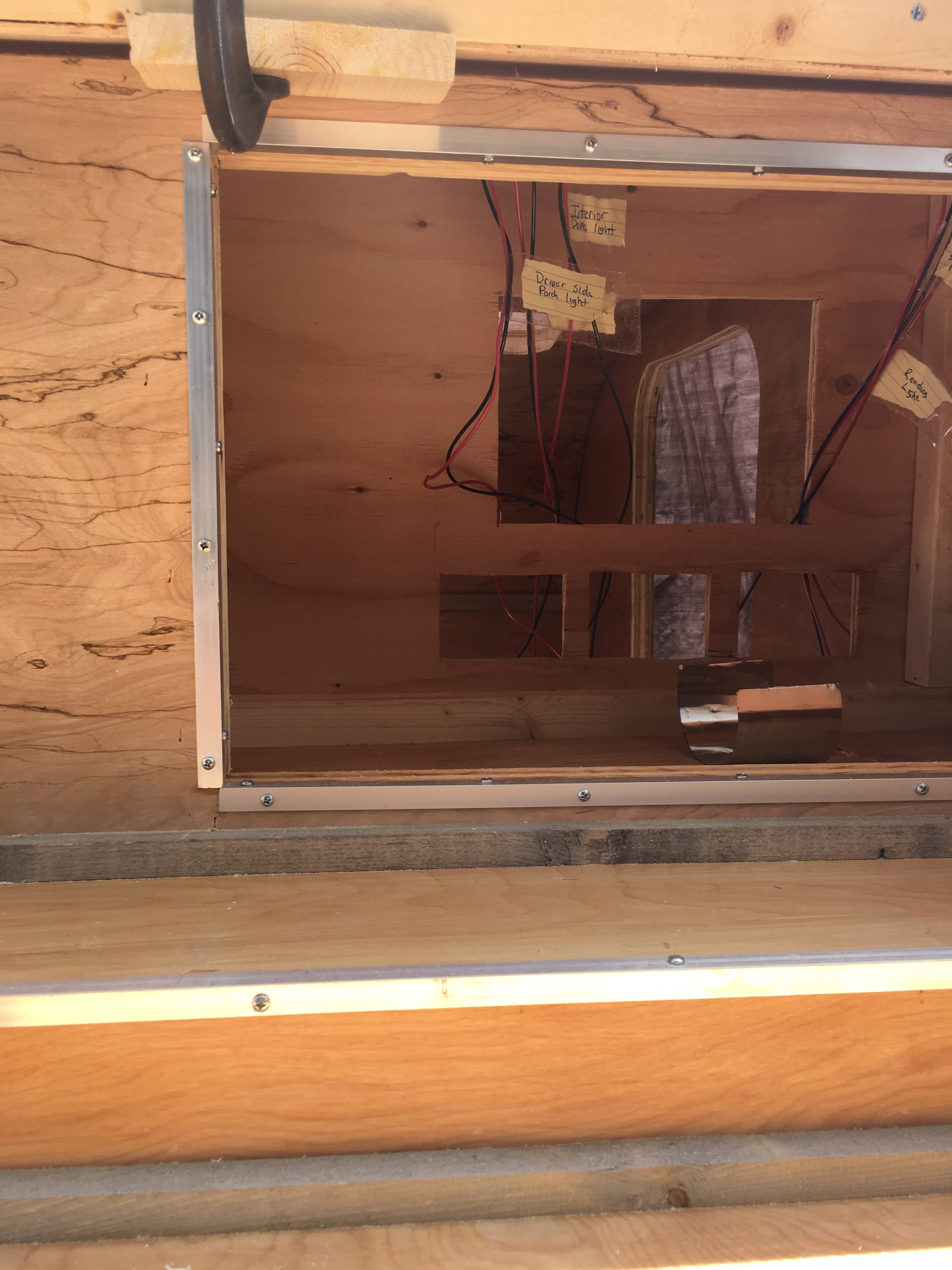 This part was (for me at least) very quick. At this point, you should have all of the holes for your components already cut out. After applying to aluminum skins, you might have to use the aluminum router trim bits to cut holes in the metal for your fan, window, etc. but you should be ready to go. Many people build their own doors and components. I've heard that it can be a pain and introduce problems, such as leaking. The door that I purchased was ungodly expensive, but it was also very high quality. When it shut, it felt like you were shutting the hatch to a space capsule. The locking mechanism was also very high quality. My recommendation would be to pony up for the door, even though it is expensive.