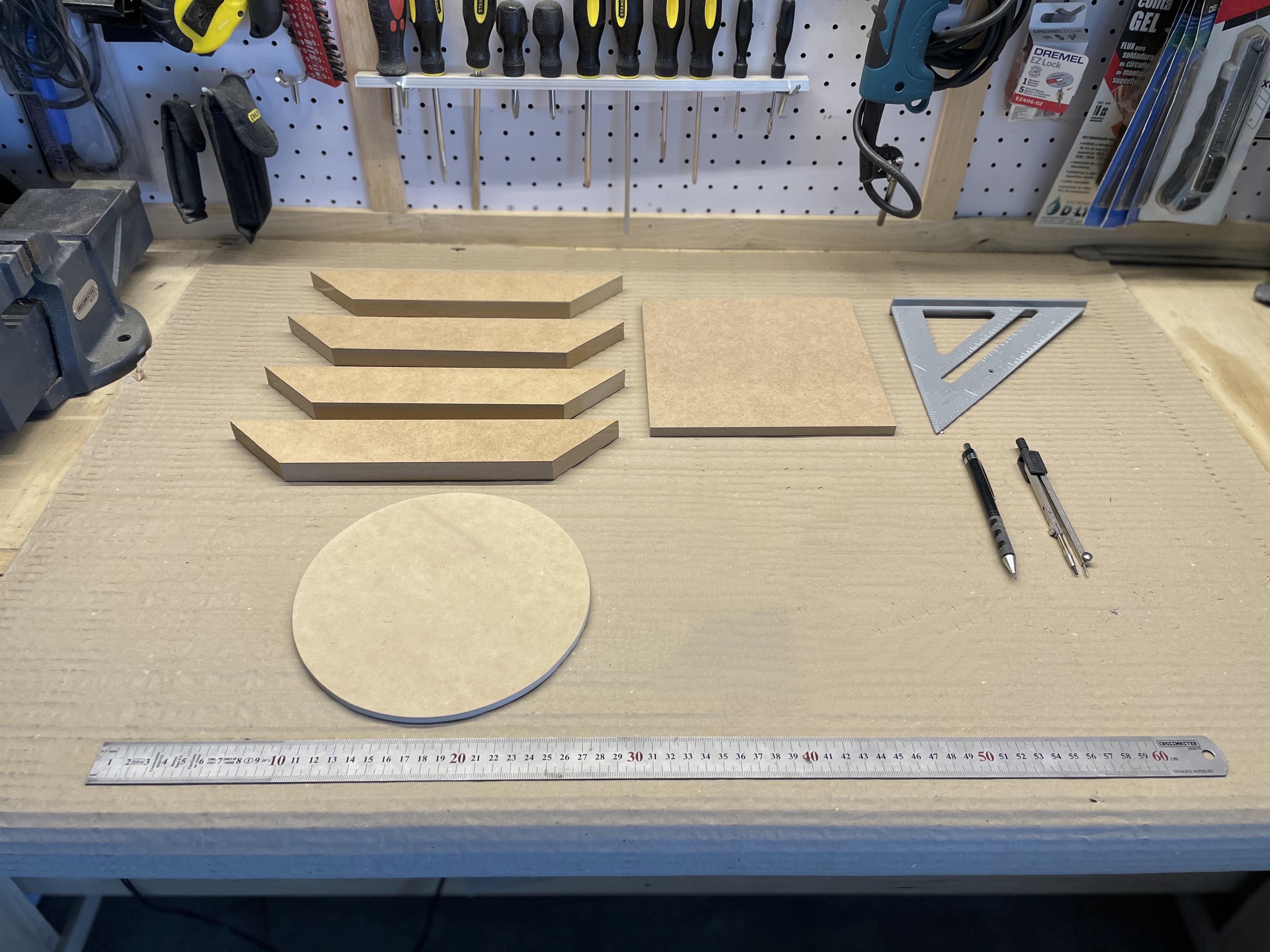 - Cut 1 disc diameter 19 cm with 5 mm MDF.