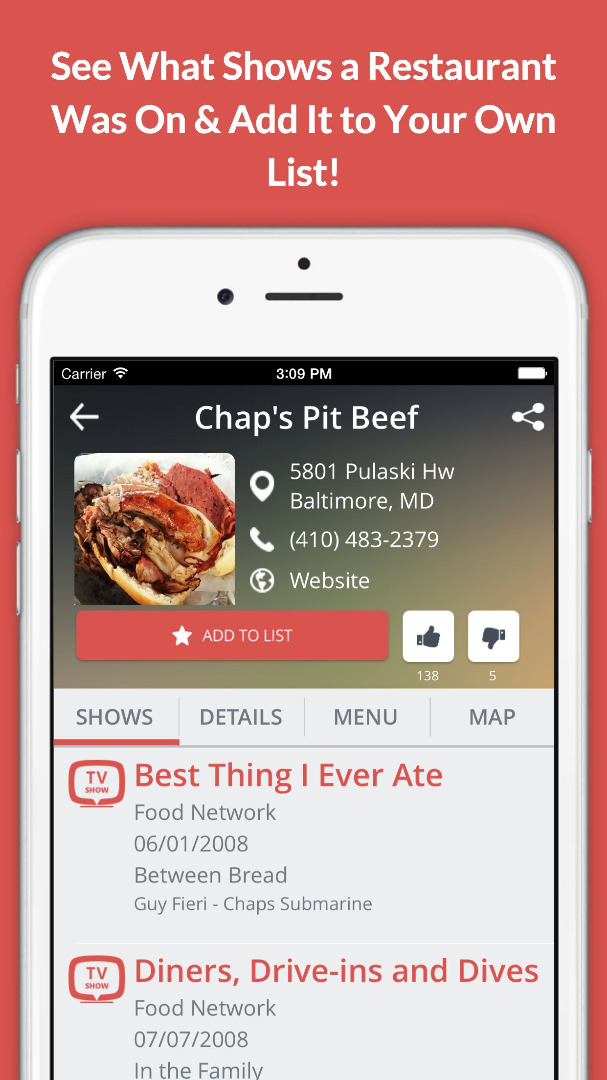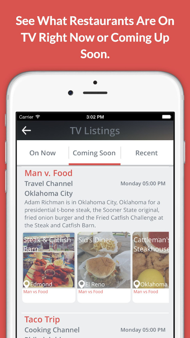 Have you ever been sitting in bed watching Food Network or Travel Channel and seen an amazing restaurant and thought "I'd love to eat there"? Have you ever been traveling to a new city and said to yourself "I remember a restaurant on Diners, Drive-Ins and Dives that was near here.."?
