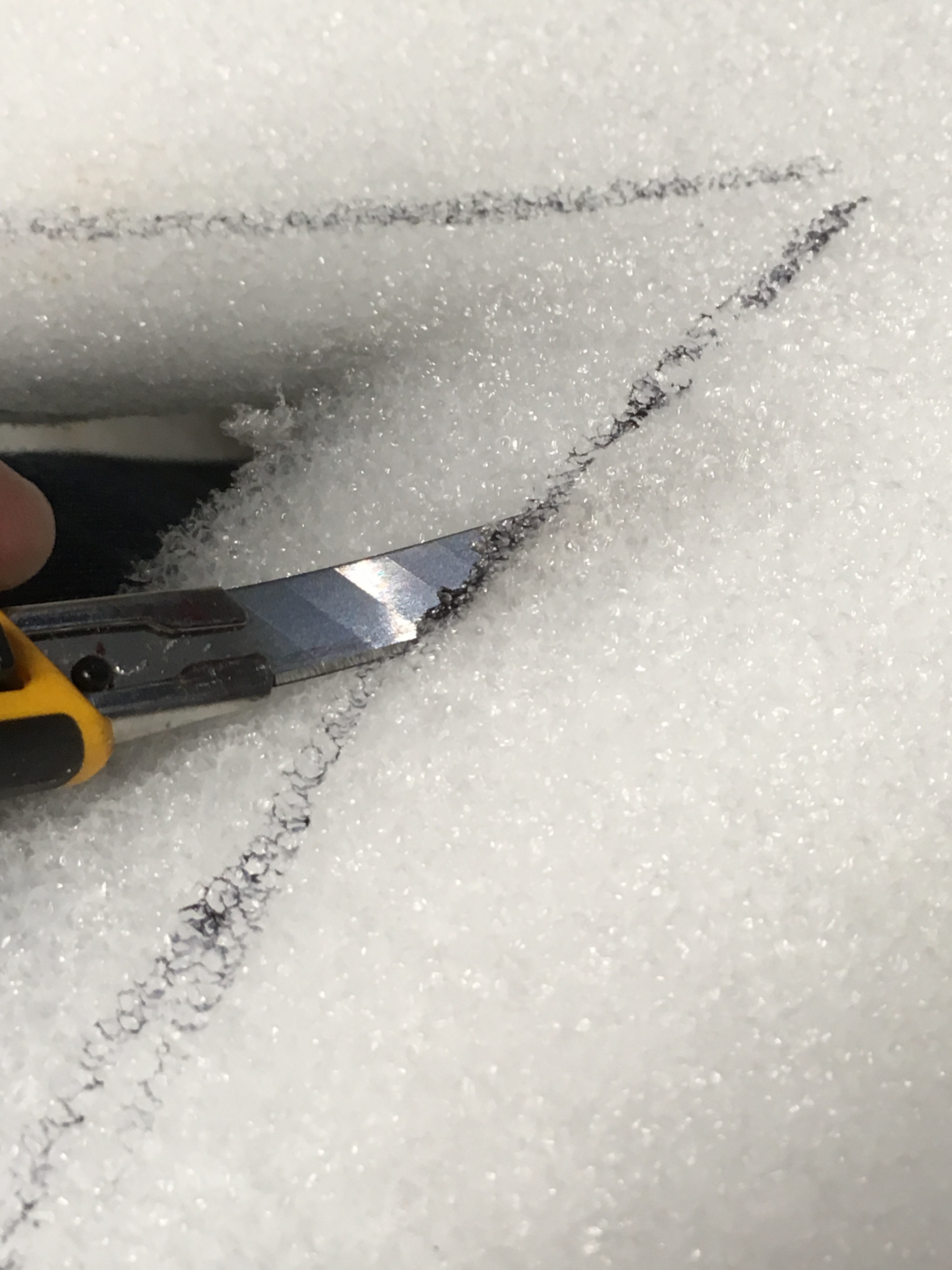 Again, I drew a 1" gutter line around the silhouette and slid my small olfa blade into the line on an angle as far as it can go. I use the small knife because the blade is flexible. I then come at it from the opposite side over where I cut and slice away the section of foam. I repeated the process until the layer had a fairly consistent thickness throughout.