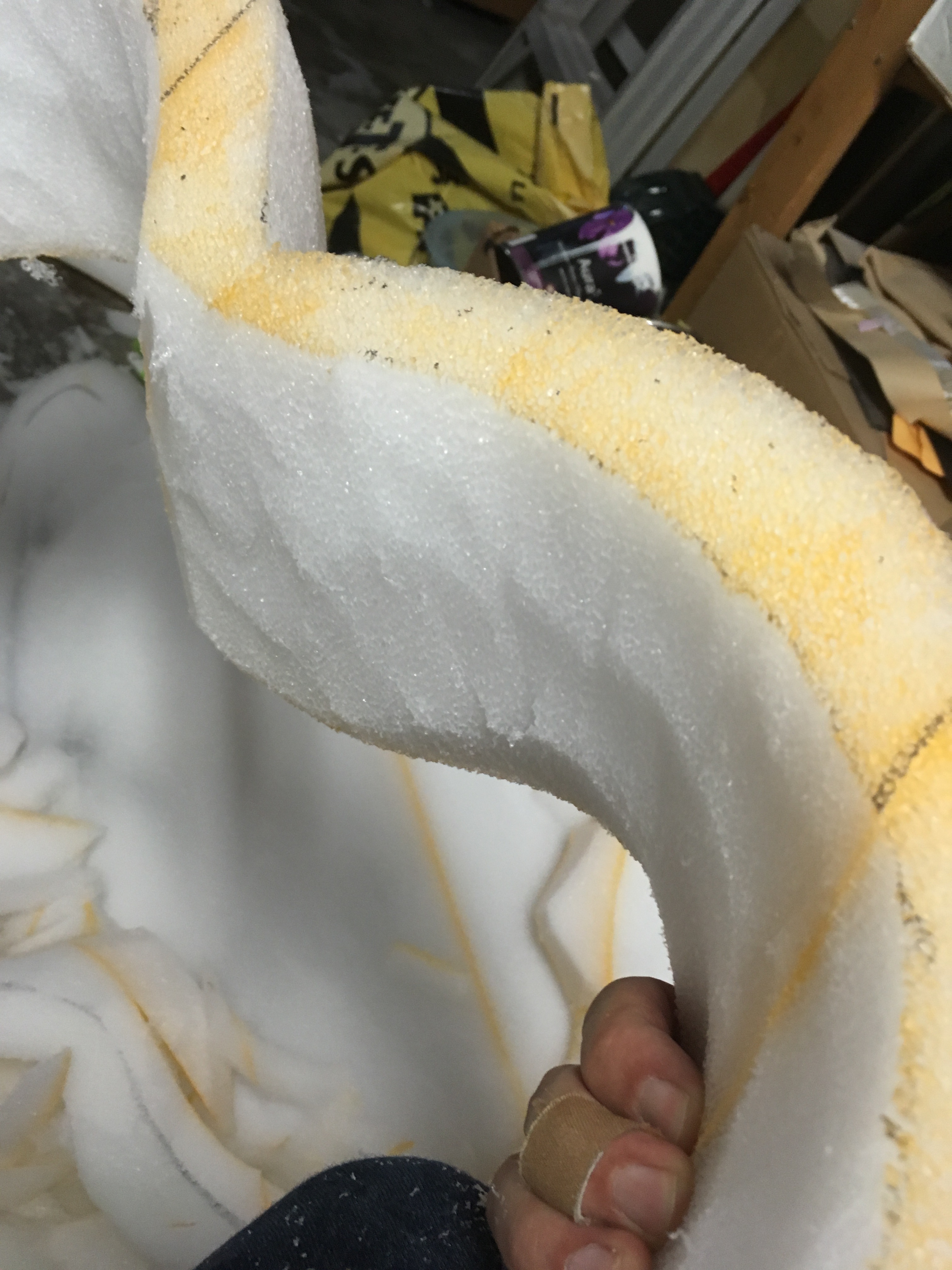 Once I was happy with the form, I pulled apart each layer of foam. Like I previously mentioned, the inside 2 of the 4 layers were pre-hollowed. Carving solid allows you to achieve as much removal of material needed to create your character, by hollowing the 2 layers ahead of time I had to patch some areas where i carved deeper than the thickness of the foam. Again, I only did this to save on material.