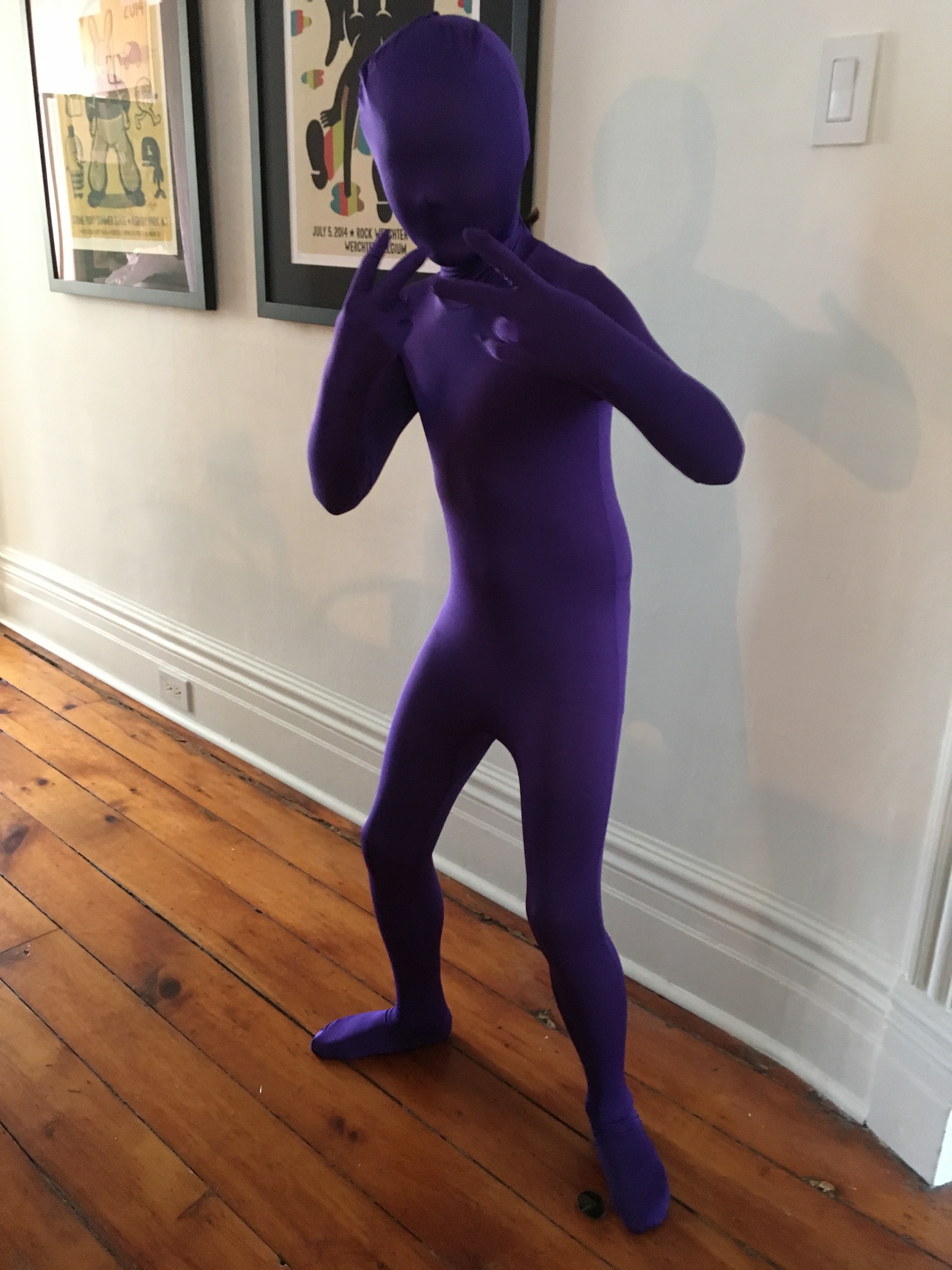 I decided to make removable prop arms for his school parade and for photos and bought a morph suit for which allowed him to use his real hands and maintain some continuity with the costume.