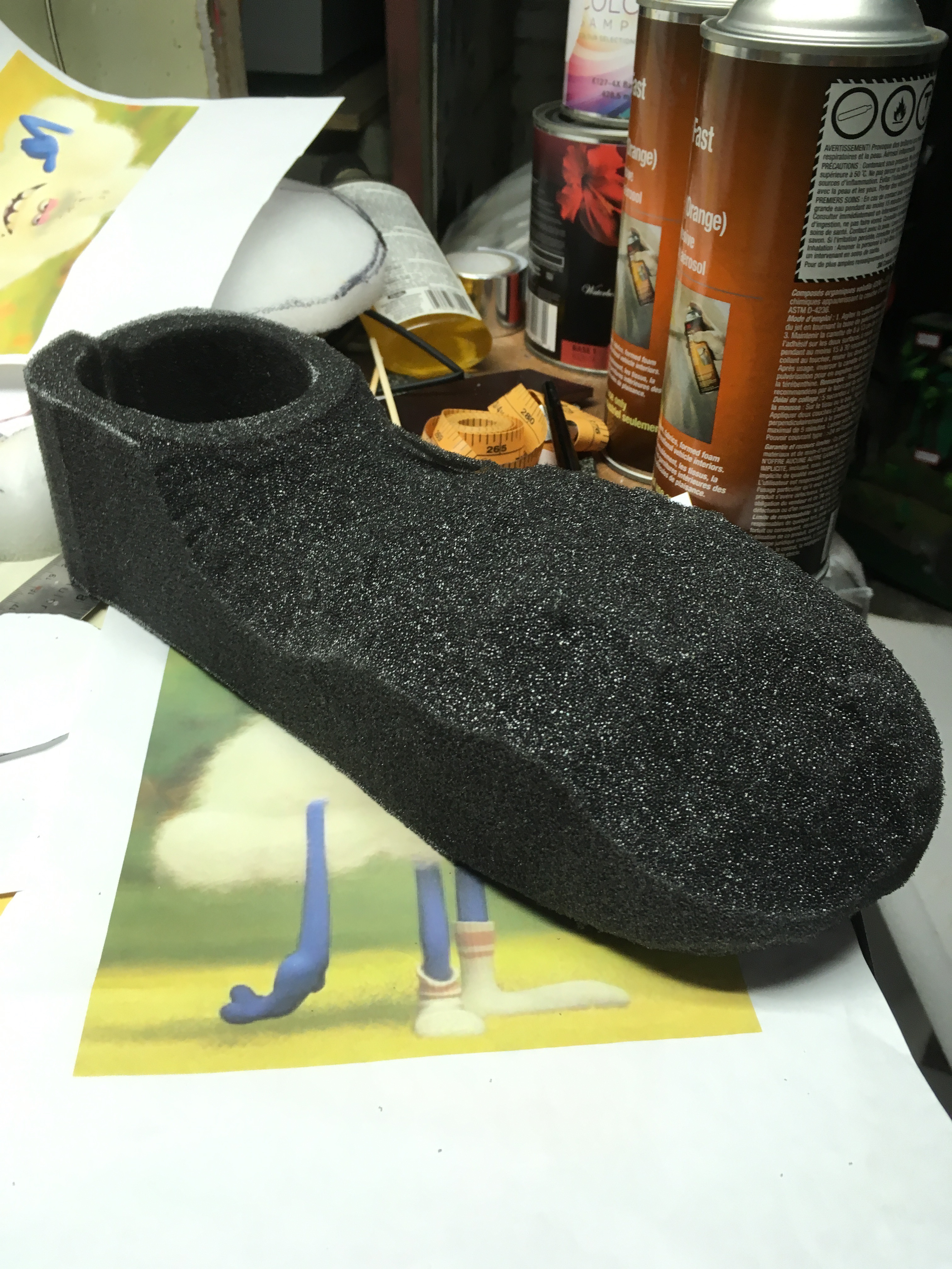 Finally a soft, flexible rubber sole was cut and spray glued to the underside of the foot.