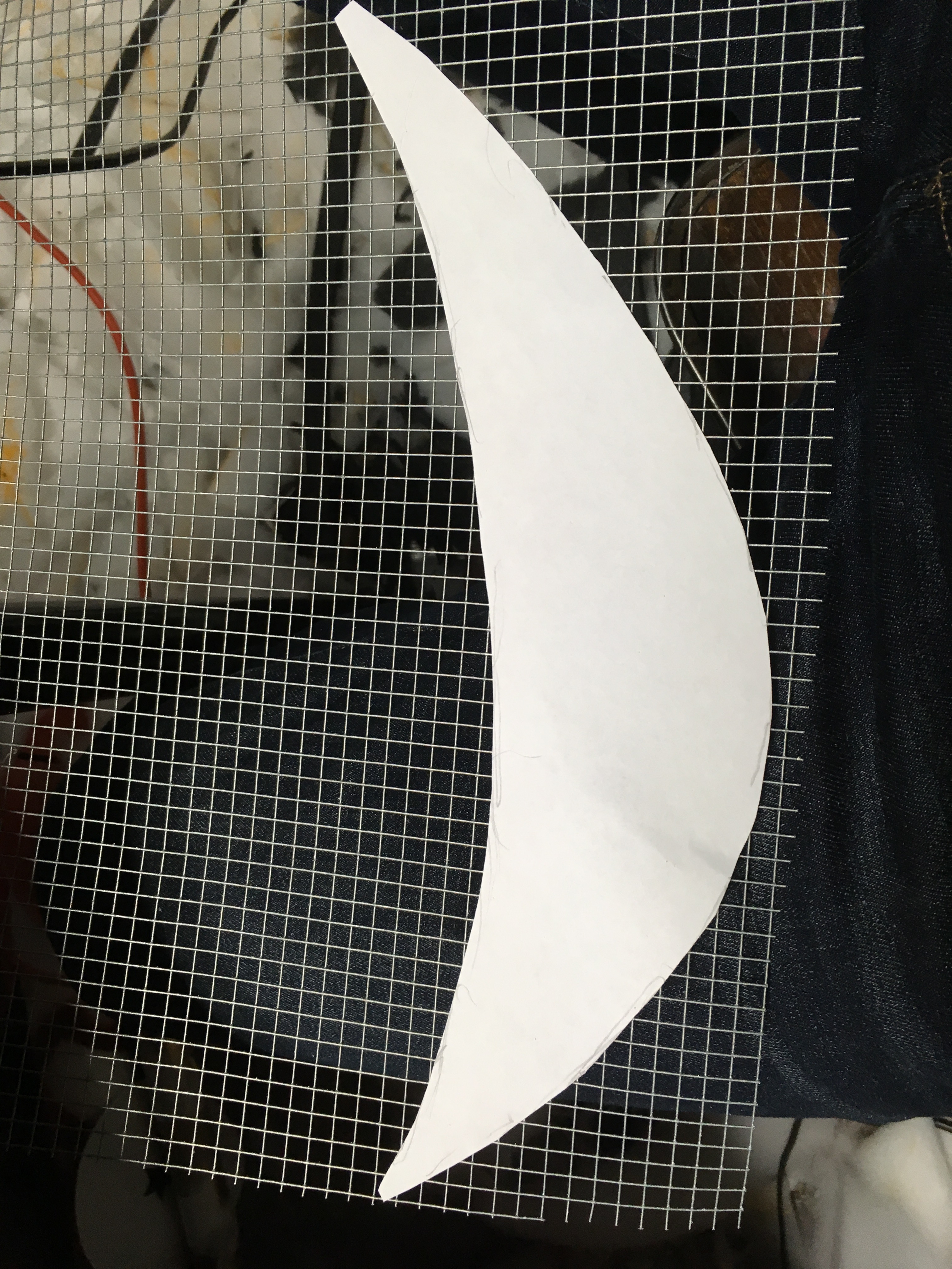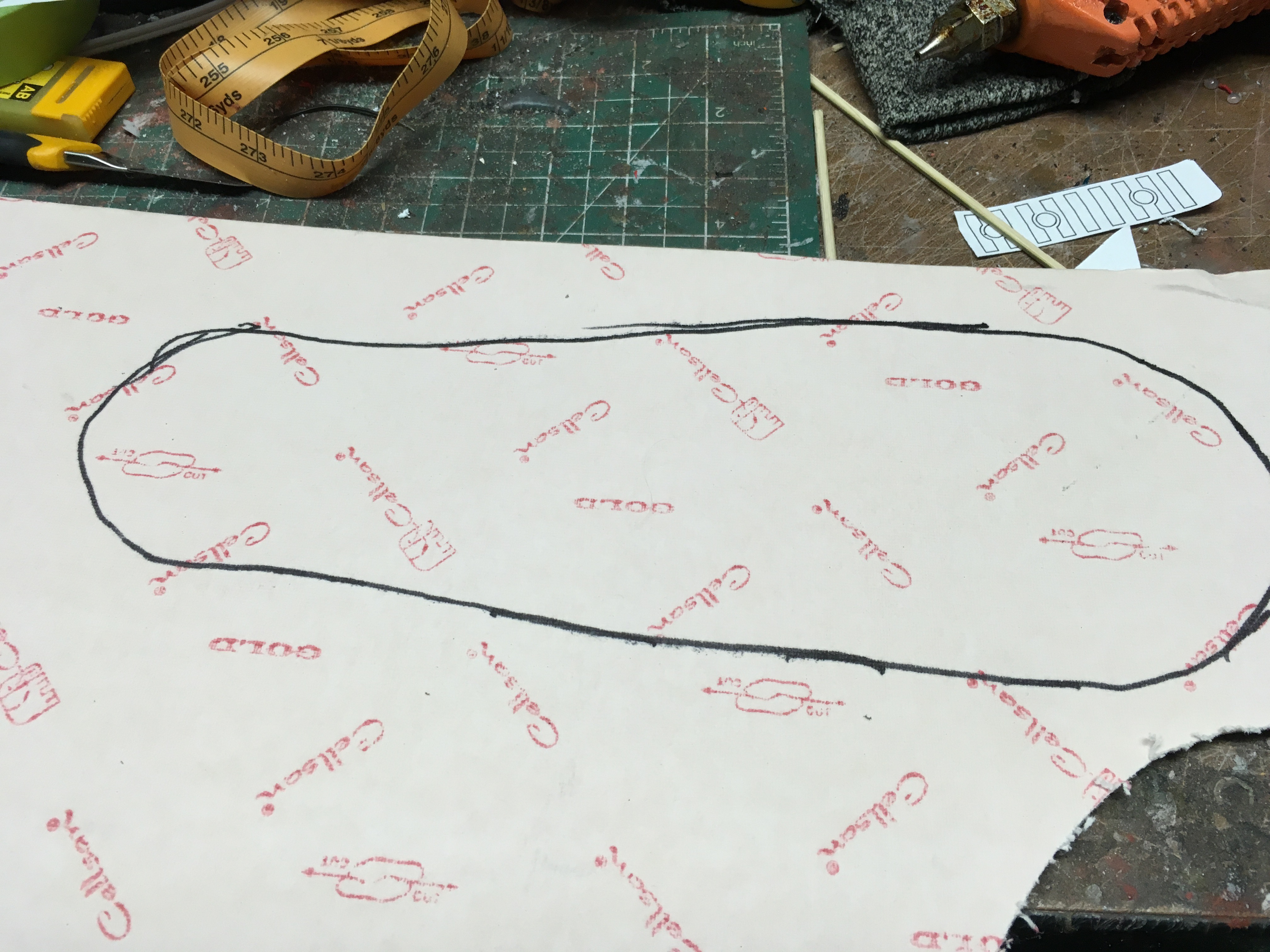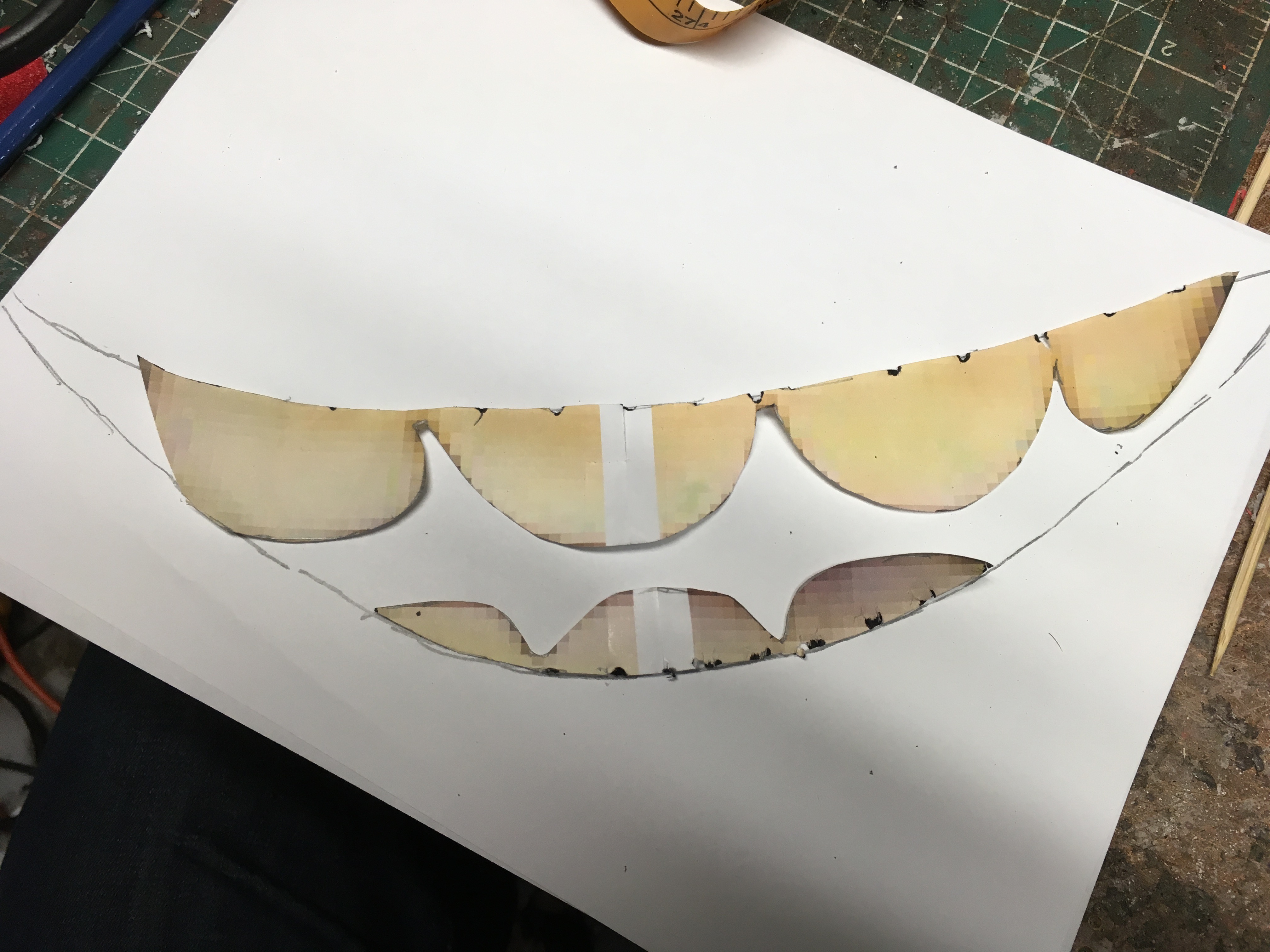 Cloud guy had a few different expression in the movie, but my favourite was the dopey look he had. Once I found the image I wanted, I traced his eyes and mouth and teeth. I then scaled the line drawing to match the dimensions of the costume.