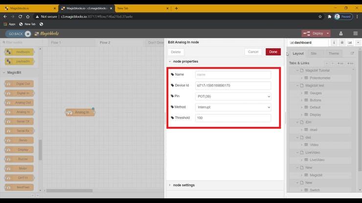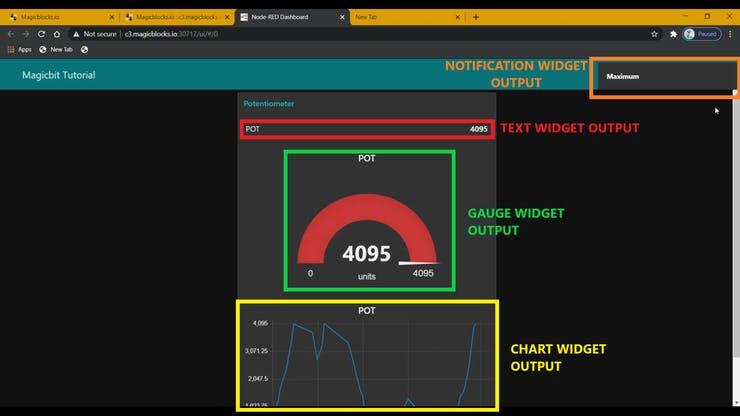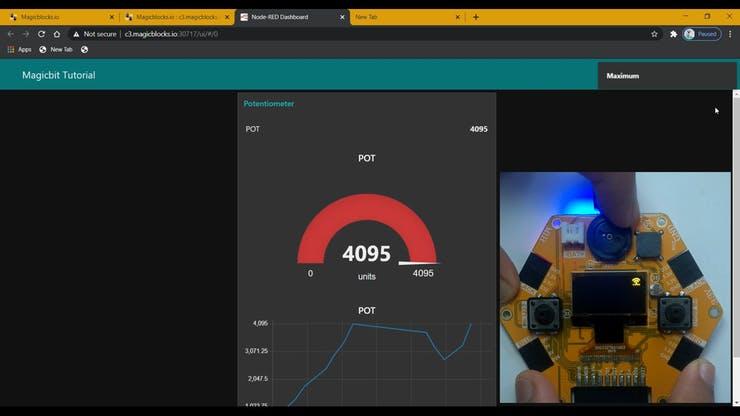 - Rotate the Potentiometer on your Magicbit and the dashboard widgets will interact accordingly.