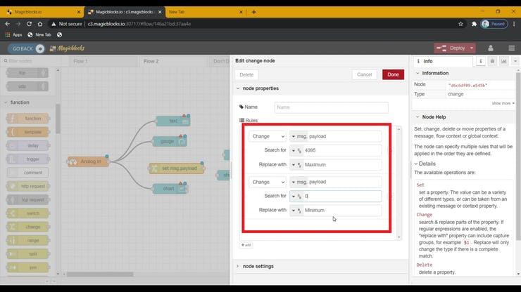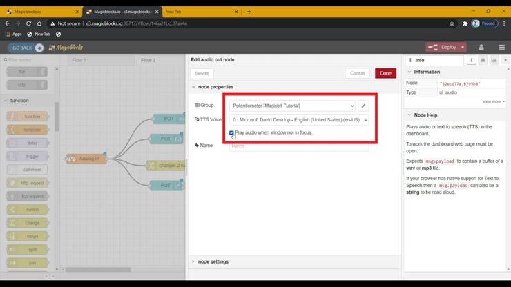(This Node is used to change the 0 & 4095 signal input from the Analog In node to any text to use audio out Text-To-Speech feature.)