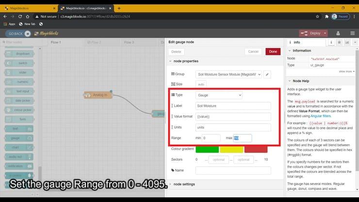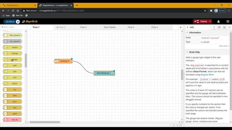 1. Drag & drop the Gauge block from the dashboard nodes section to the Flow.