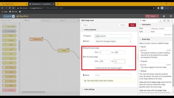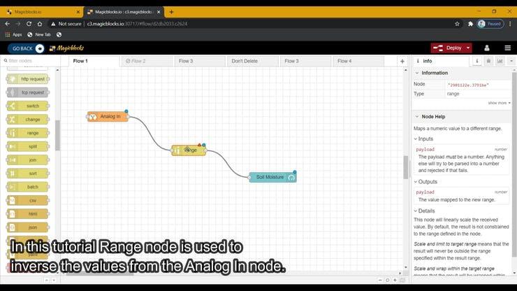 1. Drag & Drop the Range Block from the function nodes section on the left of the screen to the flow.