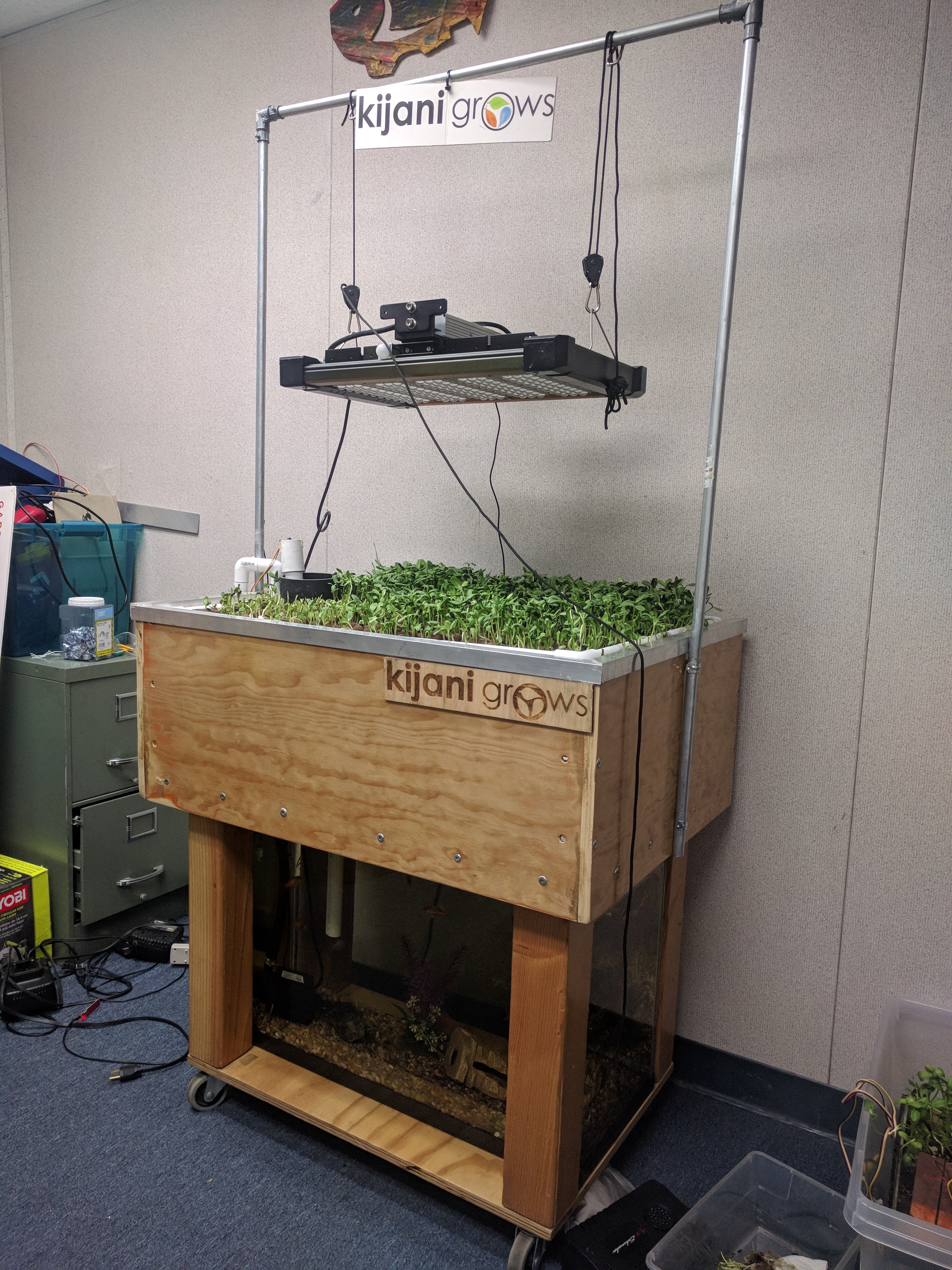 If you build one like mine, all you need is filter media in the grow bed and fish safe water in the tank. Most hydroponic media will work great, for the indoor garden I use lightweight expanded clay.