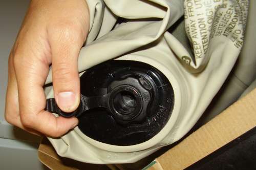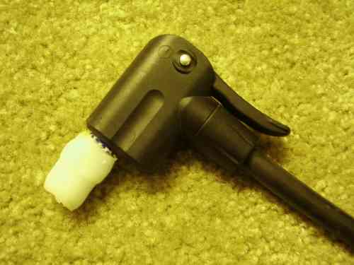 *Plastic valve used for inflating beach balls, swim floats, etc. - you can find these in sports stores or even sports departments of ordinary department stores. One end screws into the Schrader valve adapter of bicycle pumps. (Schrader is the big one, Presta is the skinny one for special tires.)