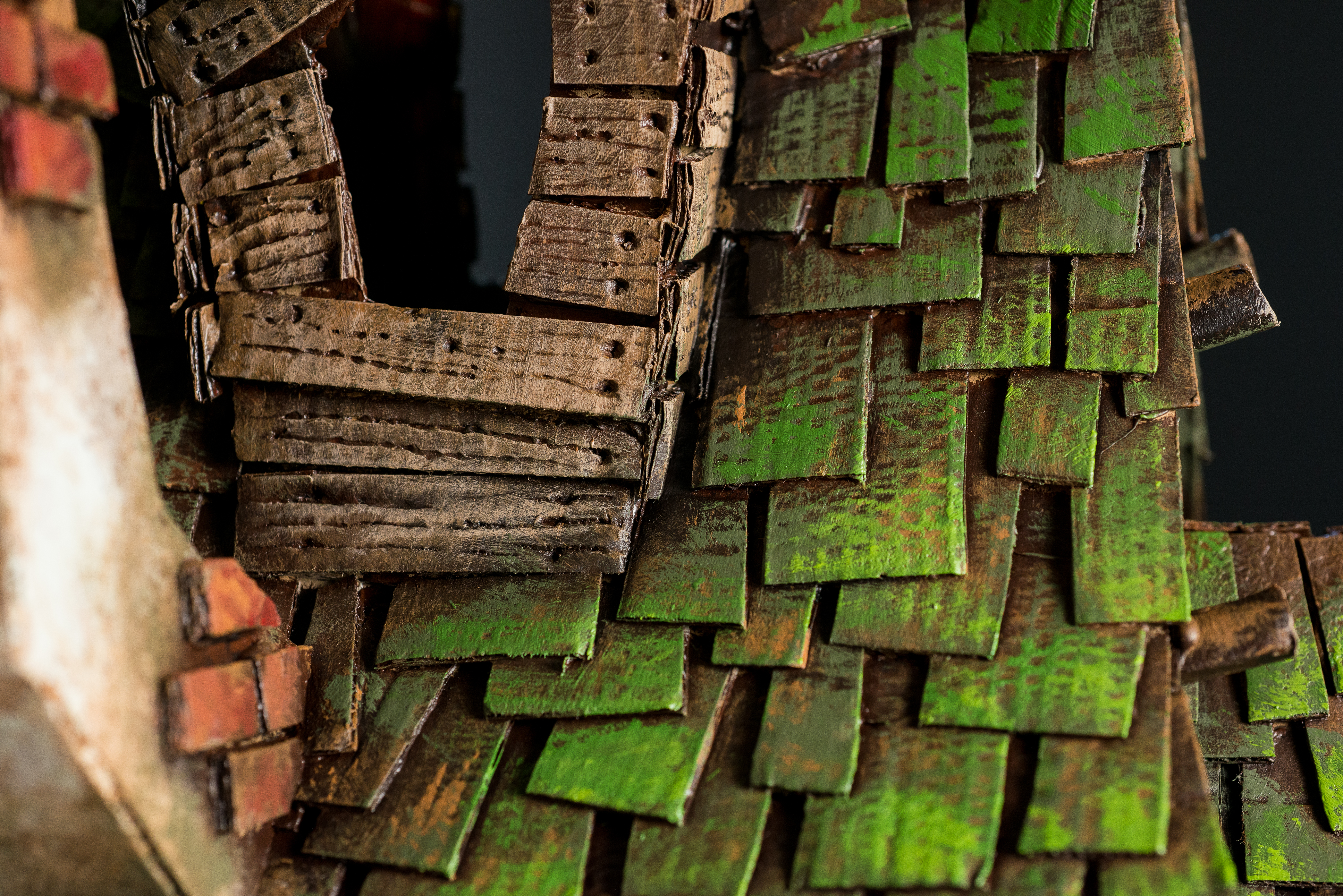 I covered the surface in a dark color first. This will serve as a base. Make it go in all the cracks and the deepest holes. It will act like a shadow and contrast layer when we add brighter colors. I add a very bright color, or even white, only to the surface of the texture, gently rubbing the brush with very little pigment so I don't get it in the cracks. On top of that bright color you can add other colors as well. You can make it brighter and more colorful, it's your choice. I made the door red and the roof green but you can play around with any color combination you like. I hope you liked my instructable and got some inspiration to start your own projects. Have fun!