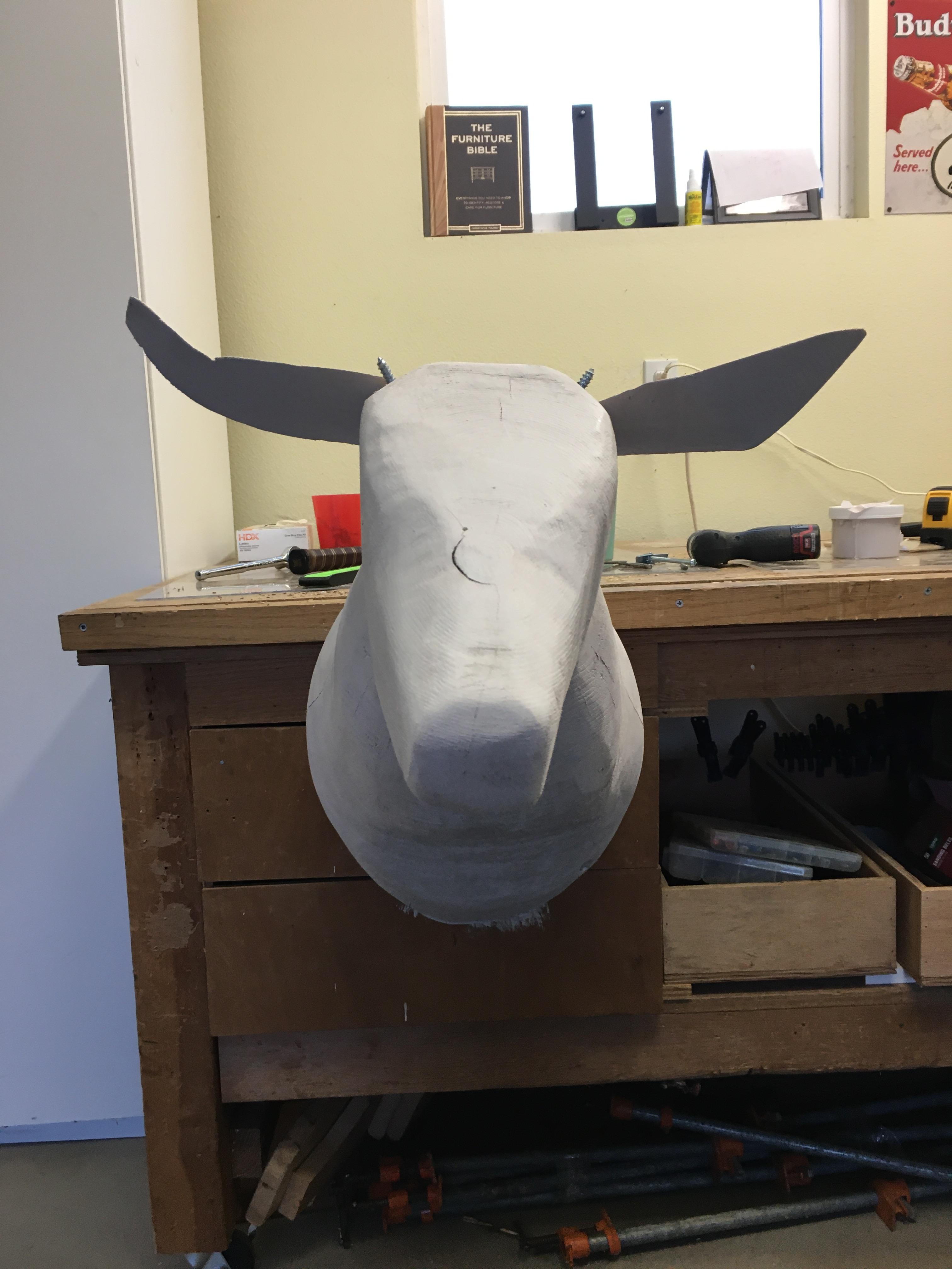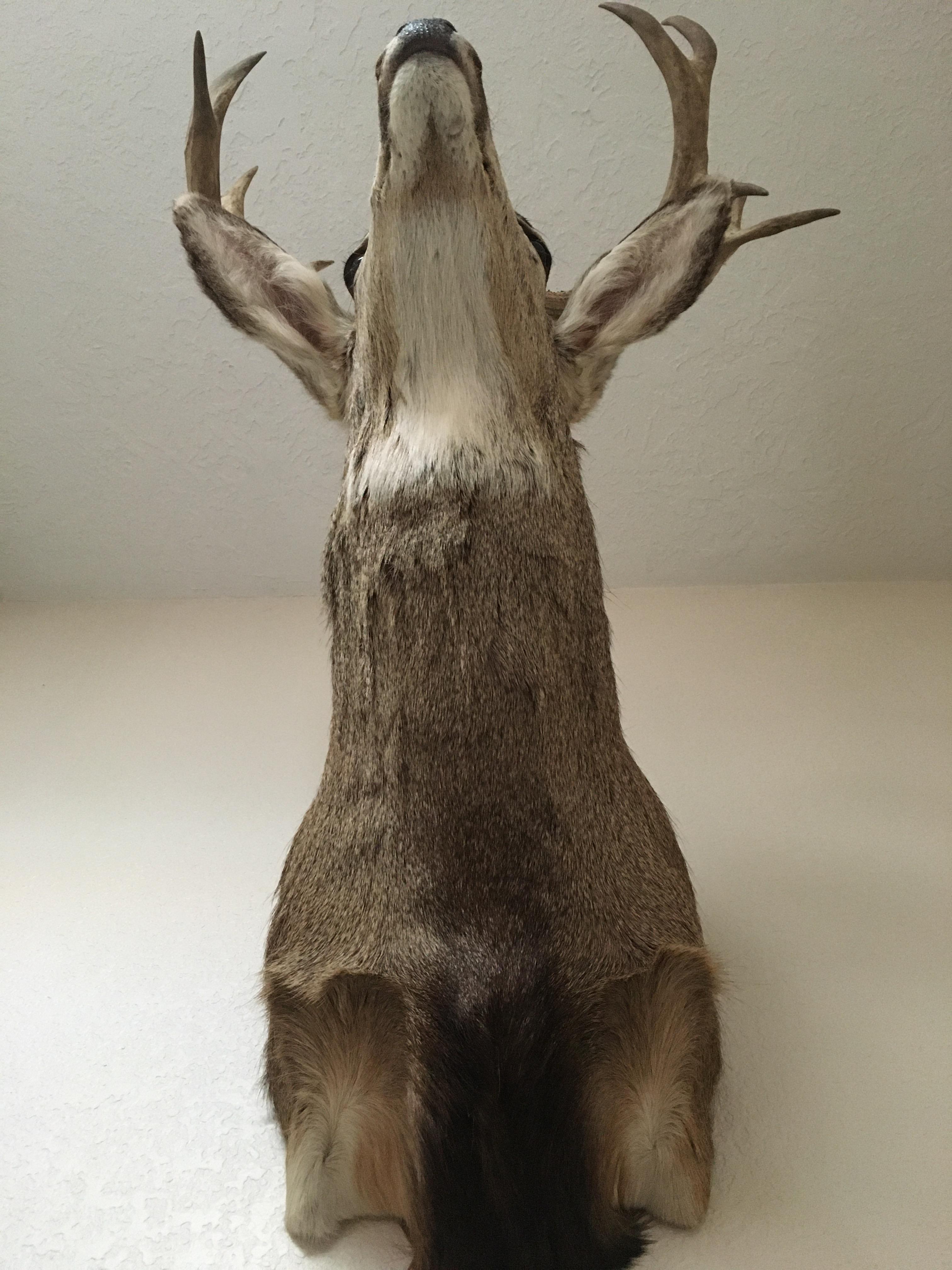 Smooth out odd unnatural ridges, bumps and lines - your goal is to make the neckline look as close to the picture as possible. Keep your photos of the deer head posted immediately nearby and, as you sand, look at it constantly, both from underneath, side, and front. Your comparison should highlight areas that don't look right.