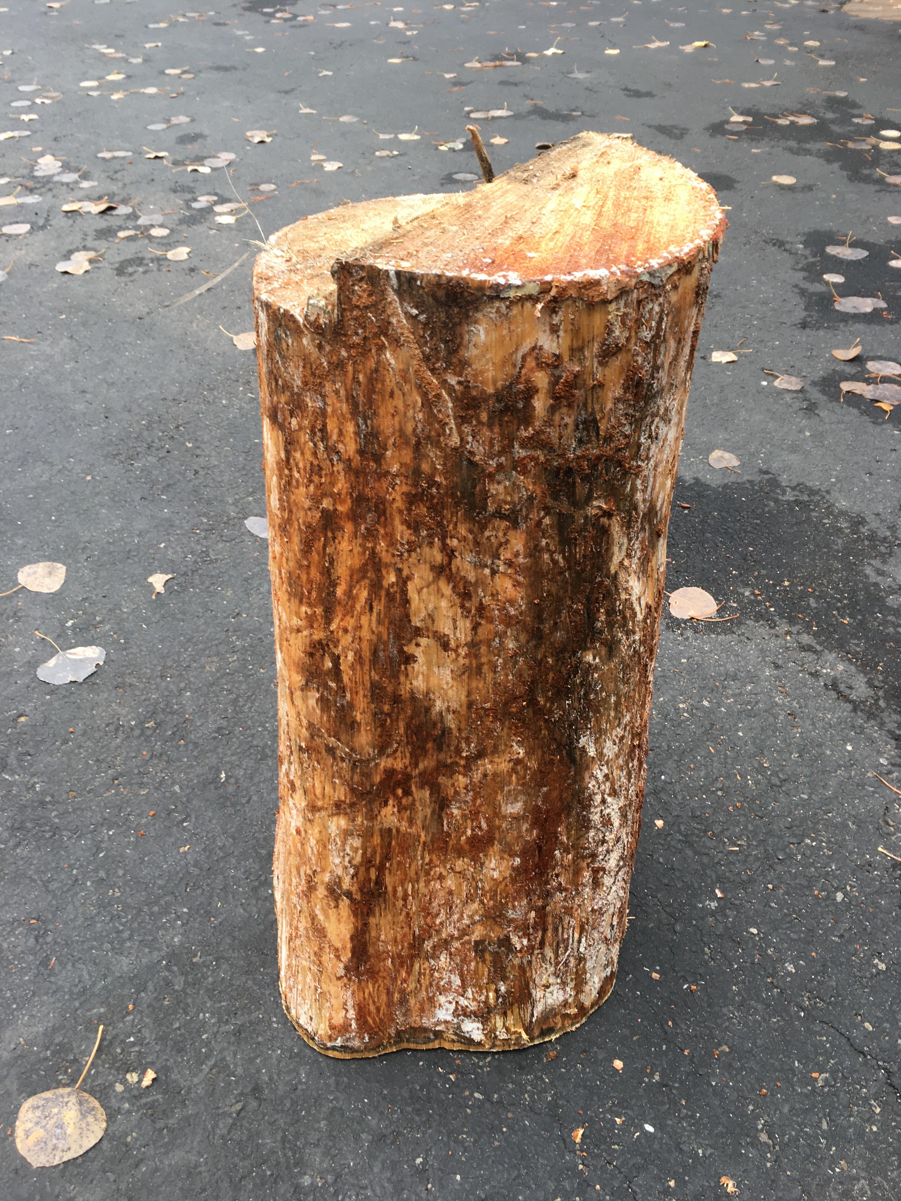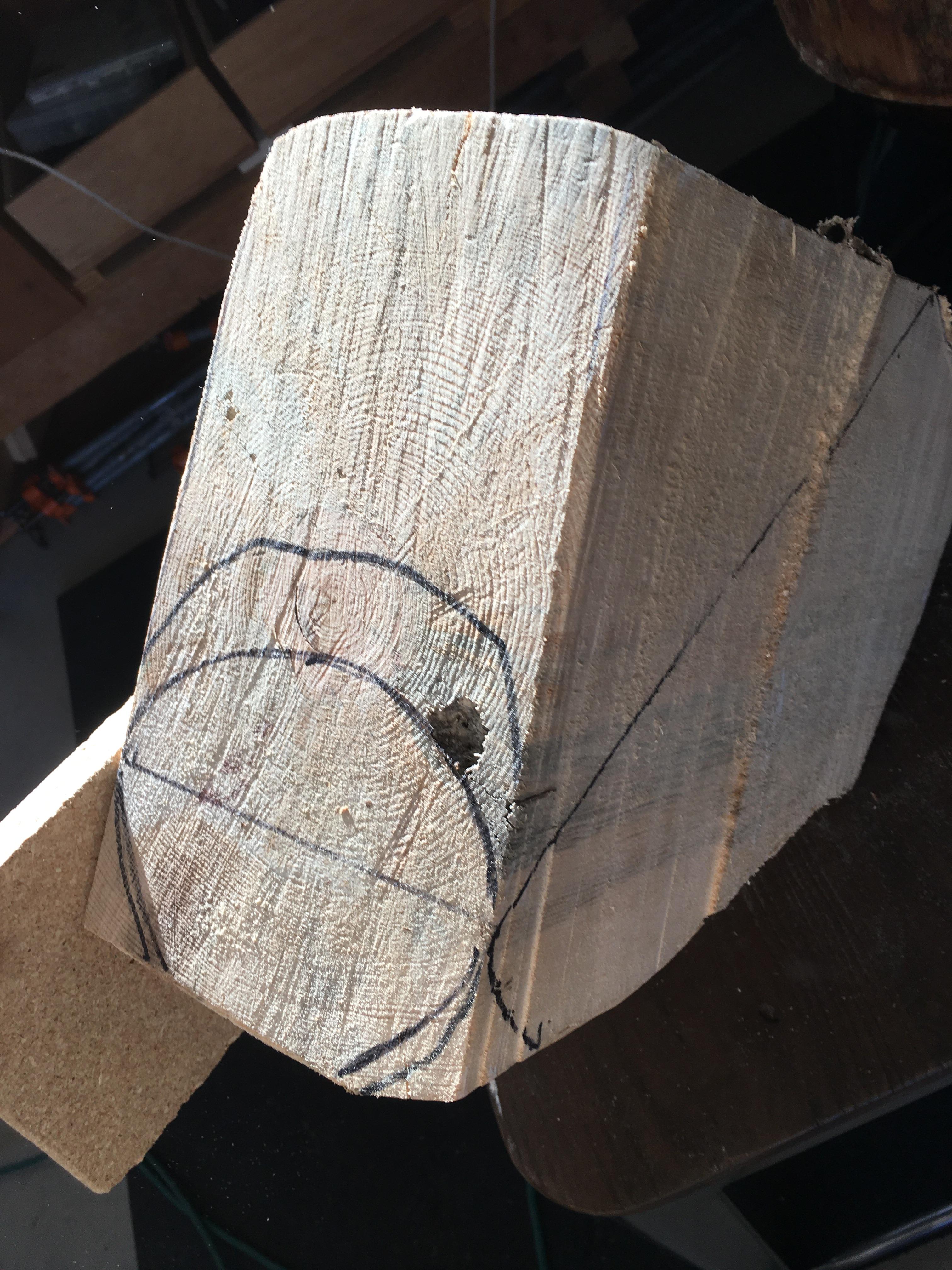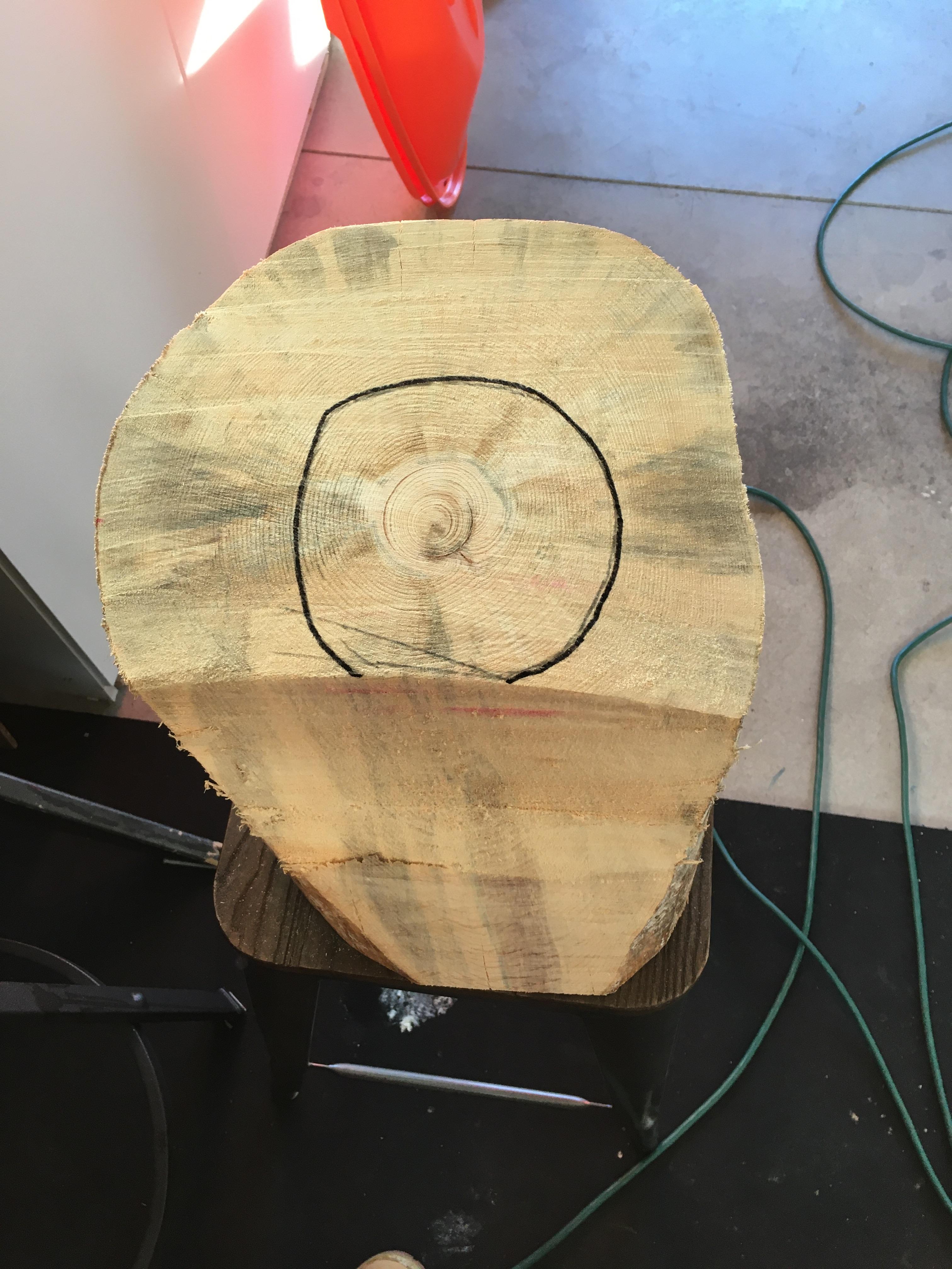 Then, on the end of the log, draw circles of the 10"/8"/6" (the diameter of the log was already 14").