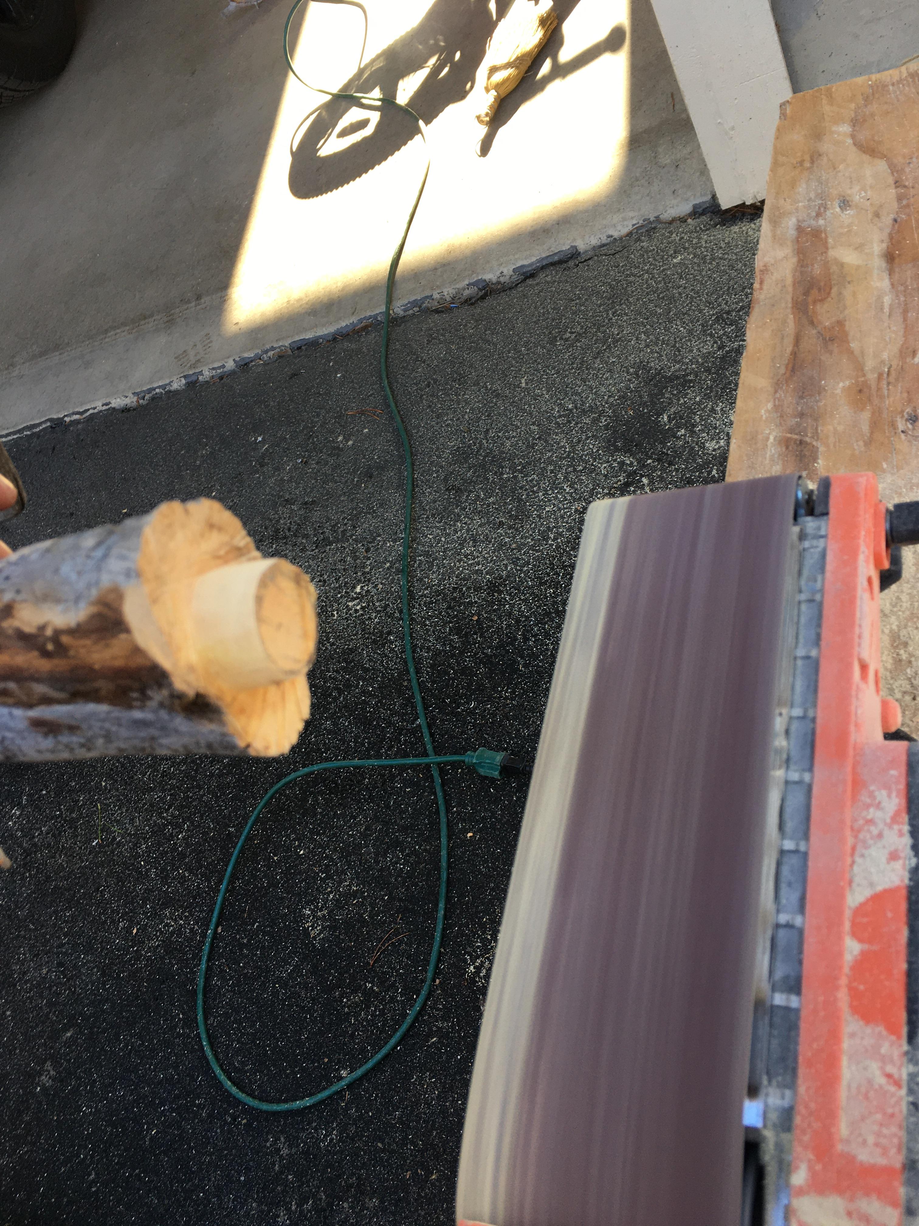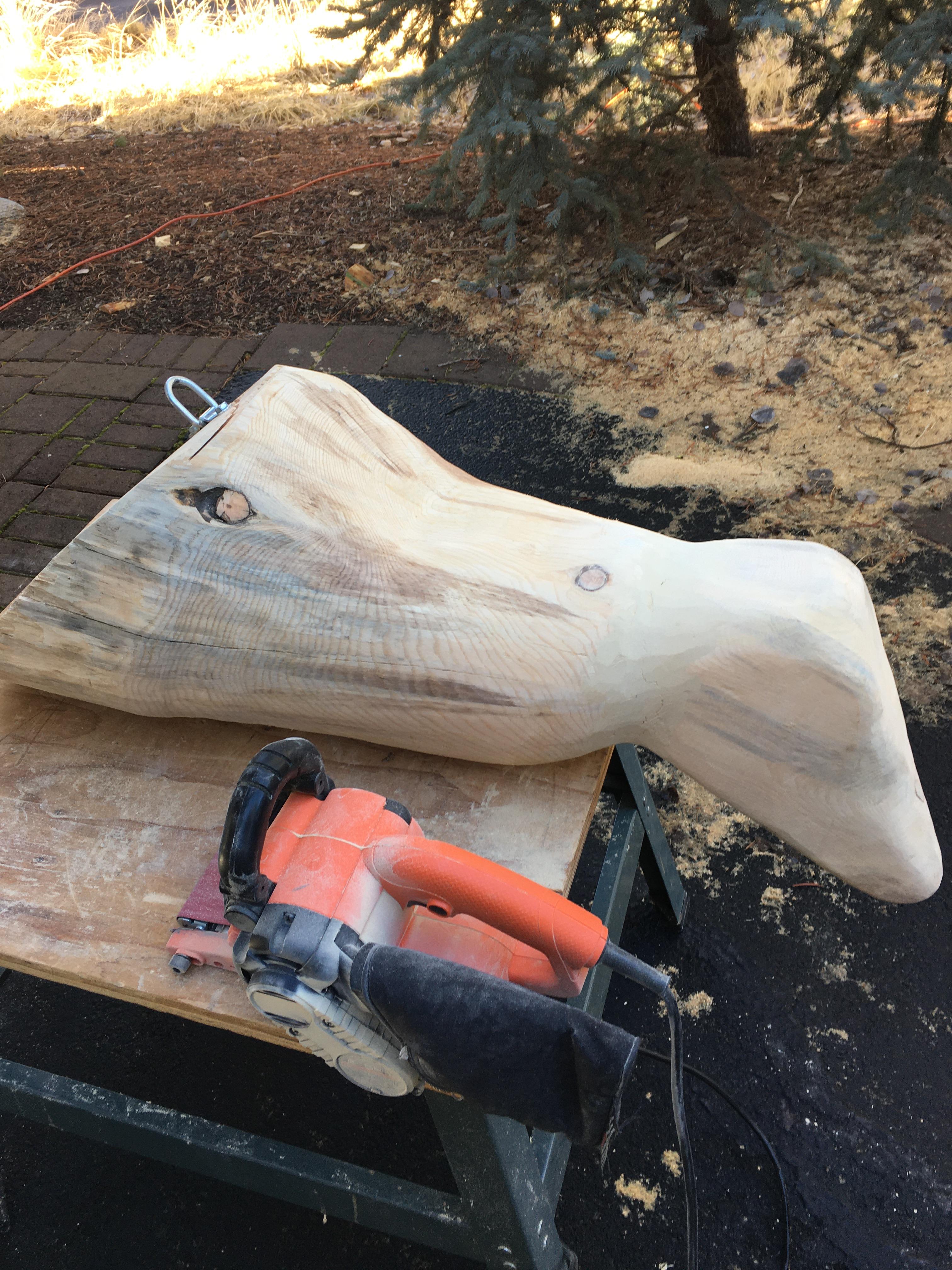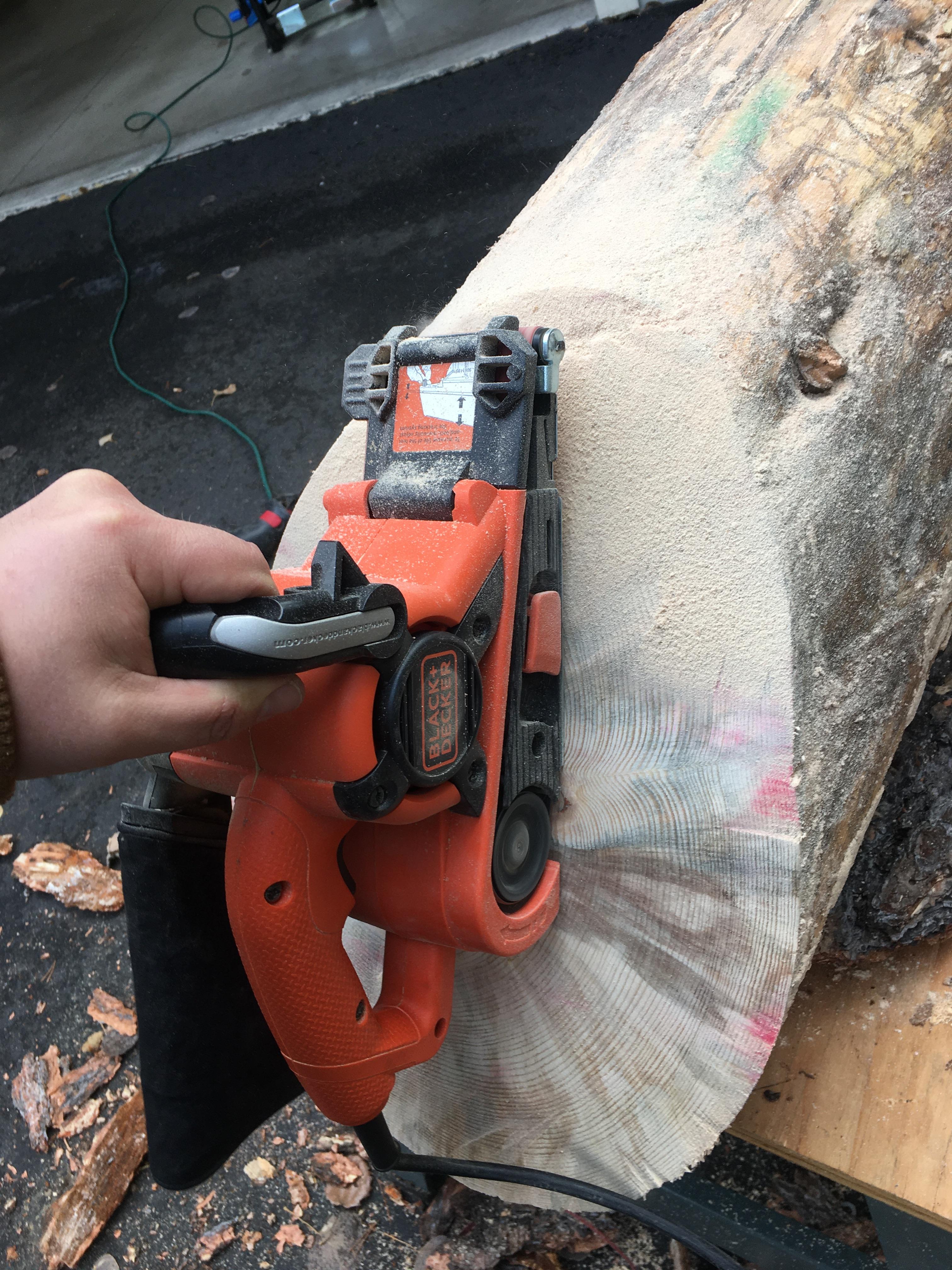 Now you start sculpting with your belt sander! Start sanding and smoothing all the way around.