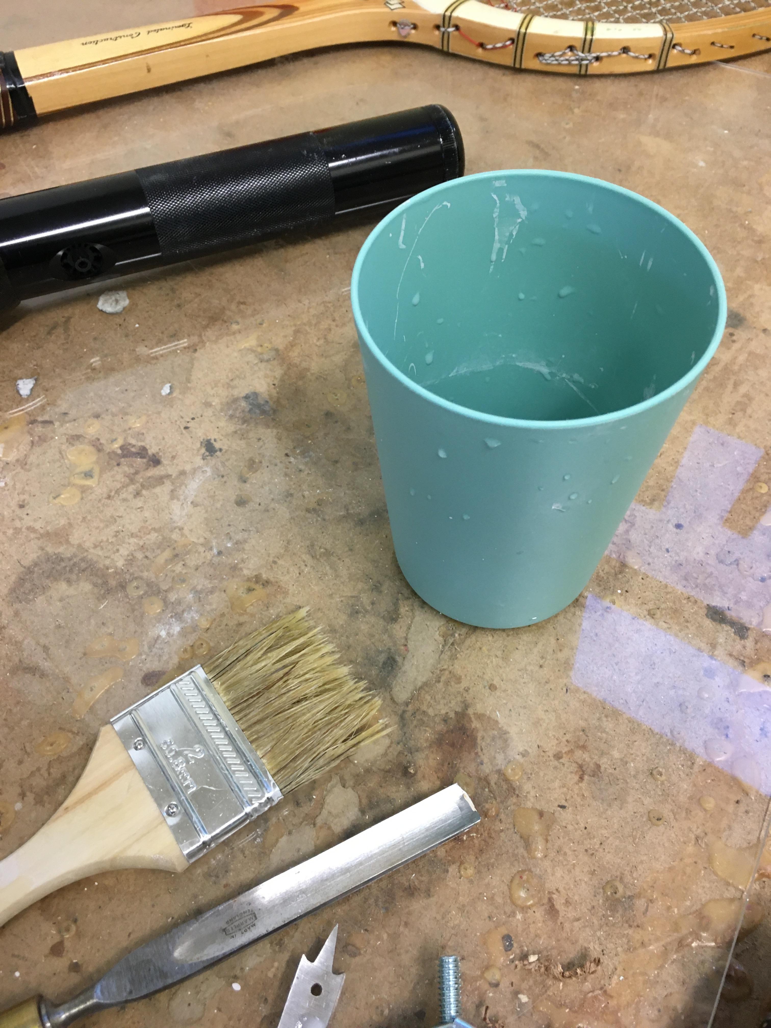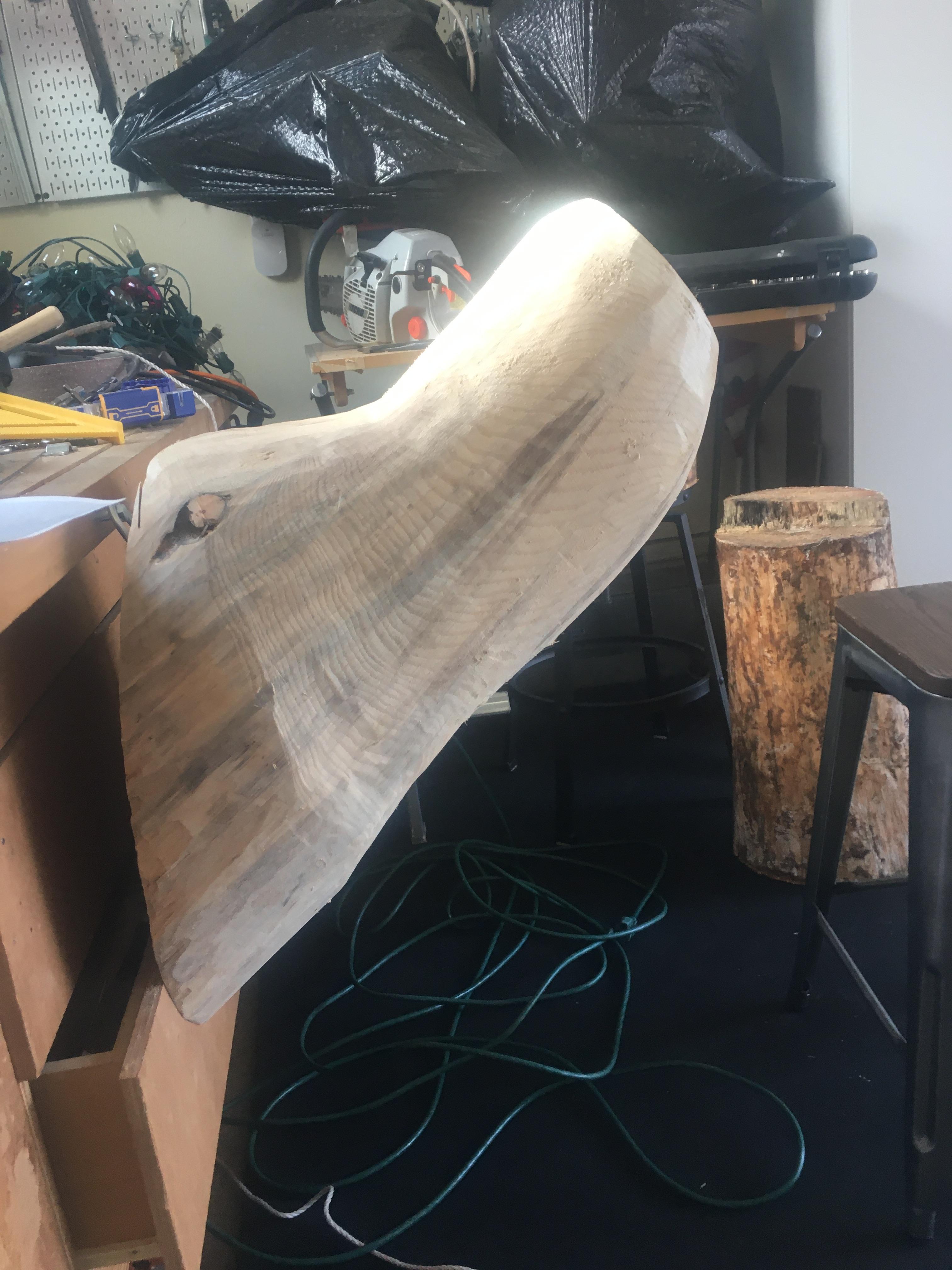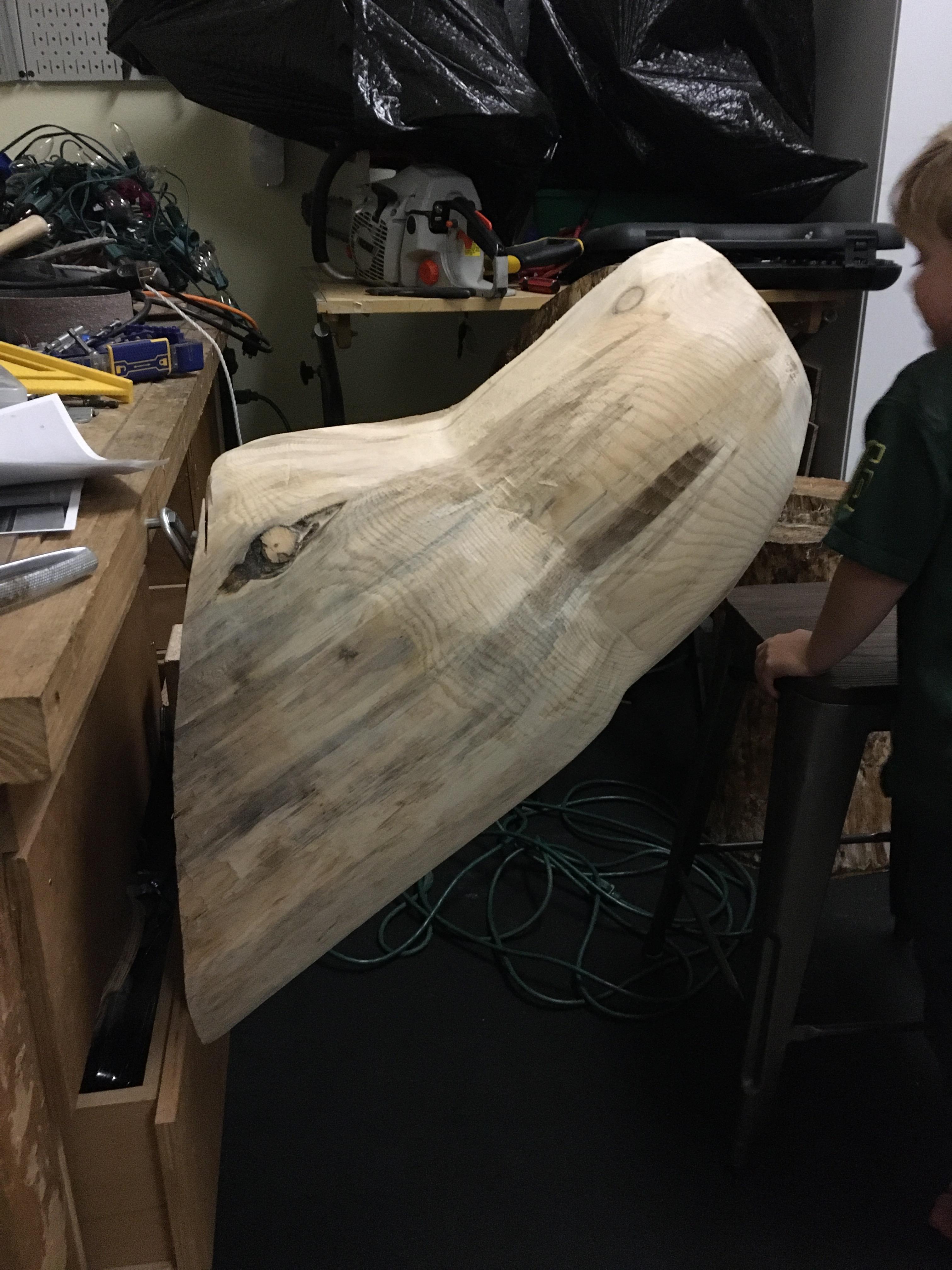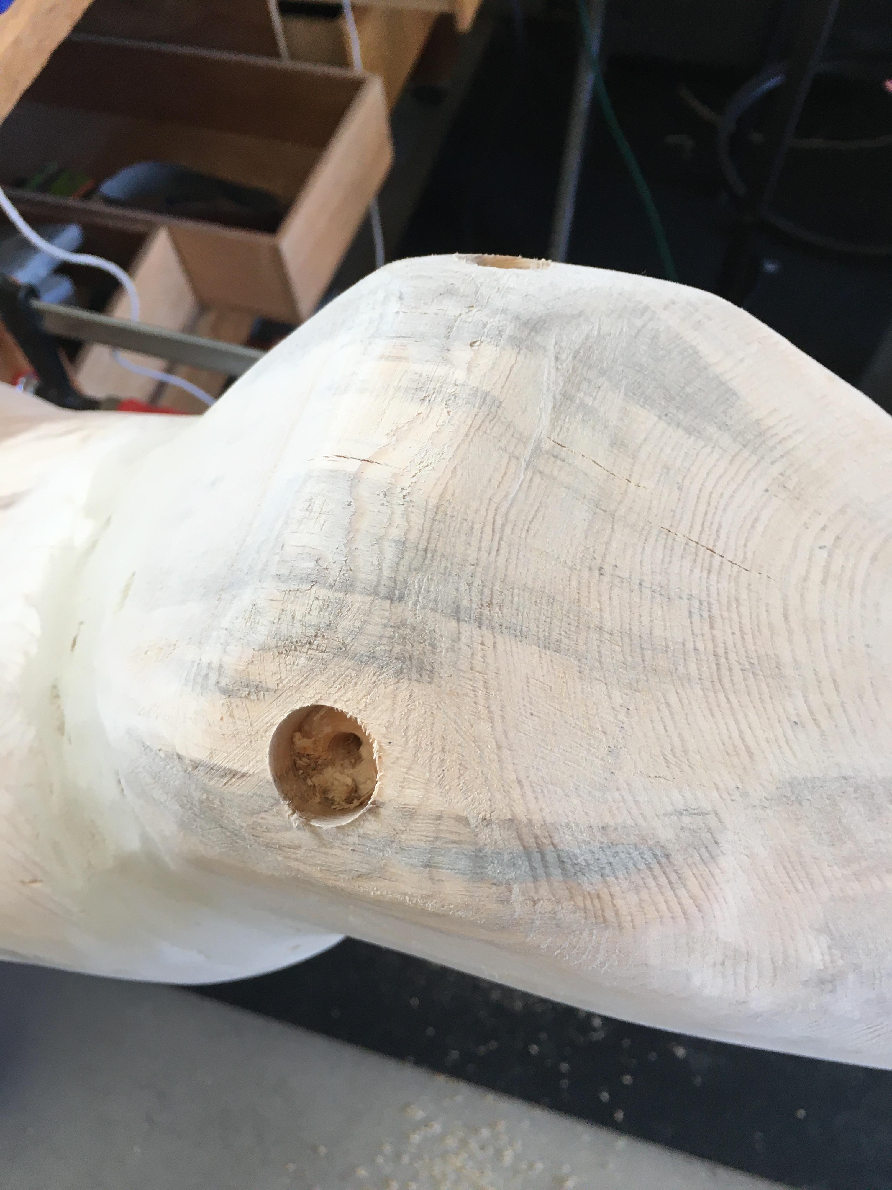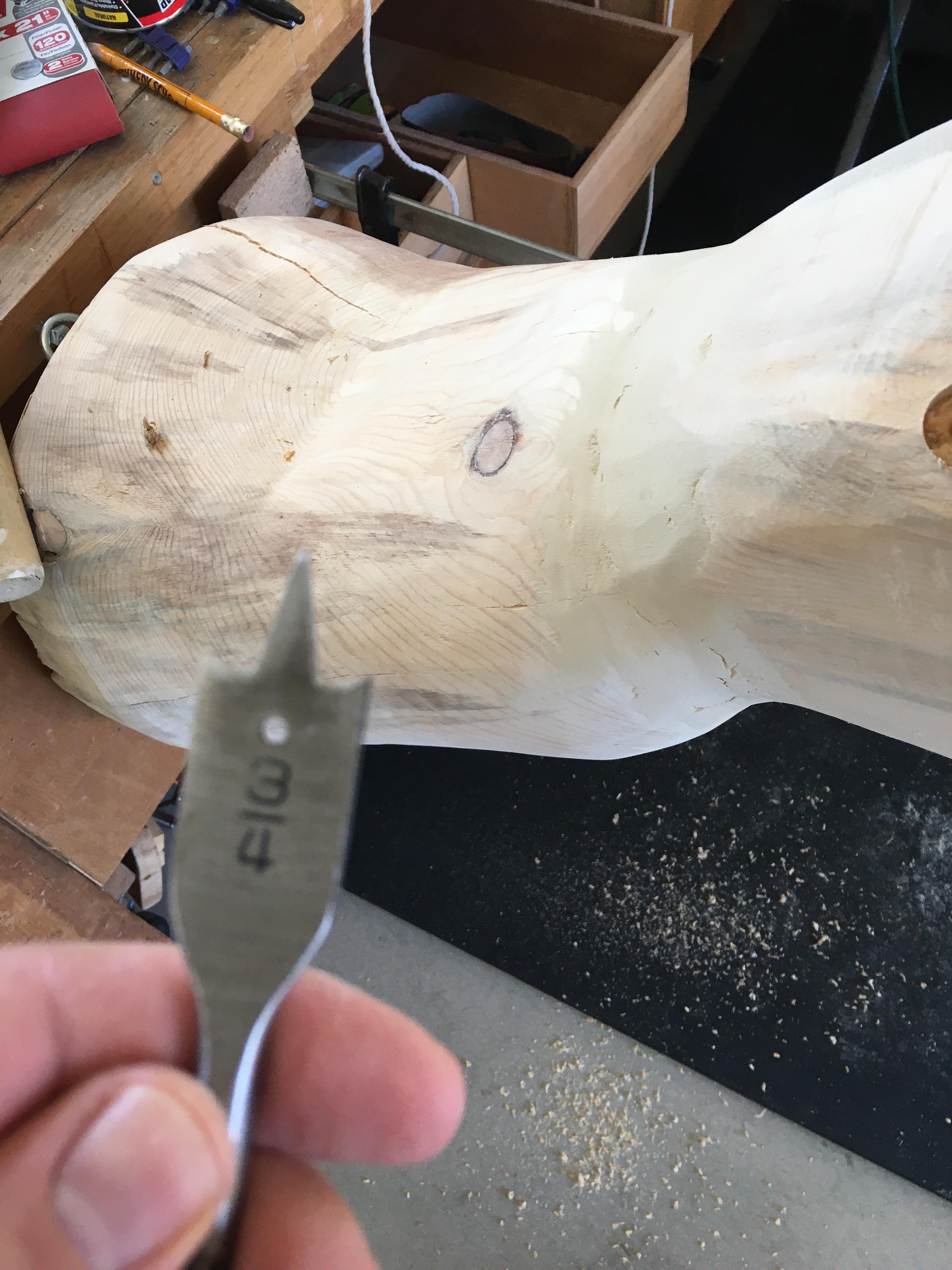 Finish up by sanding smooth and drill a large strong bolt into the back in order to hang it temporarily while you're working on it.