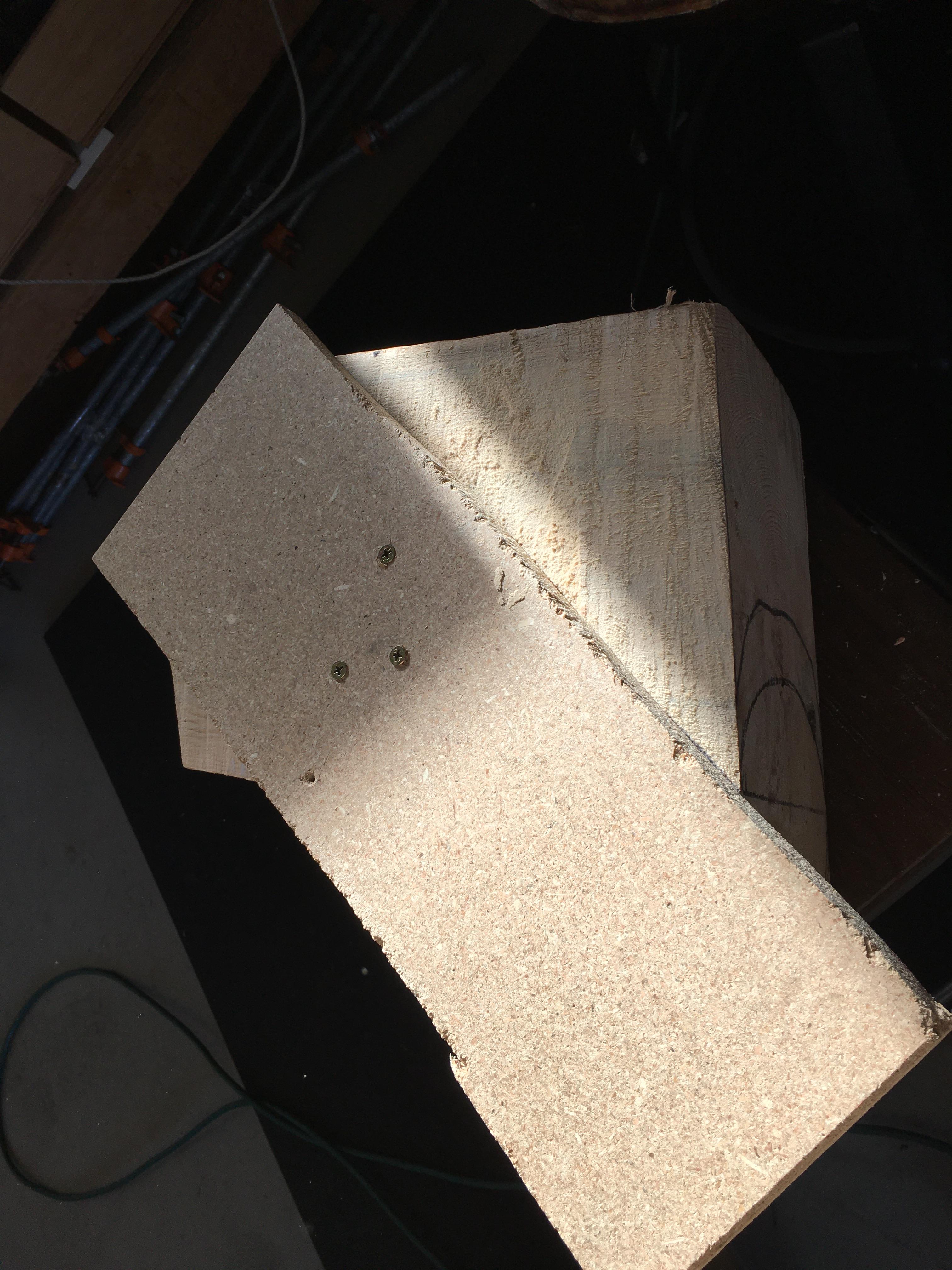 Your second cut will be the bottom of the head, from the neck to the jaw. Use the scrap wood to guide you straight. As difficult as it is, I recommend using a hand-saw to be able to control your cut and make it clean.
